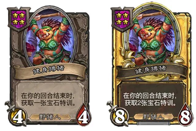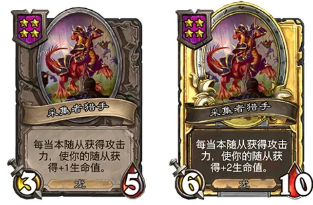 改动后:[等级4]3/5。每当本随从获得攻击力,使你的随从获得+1生命值。