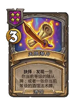 改动后:[3铸币]抉择:发现一张你当前等级的随从牌;或者一张你当前等级的酒馆法术牌。
