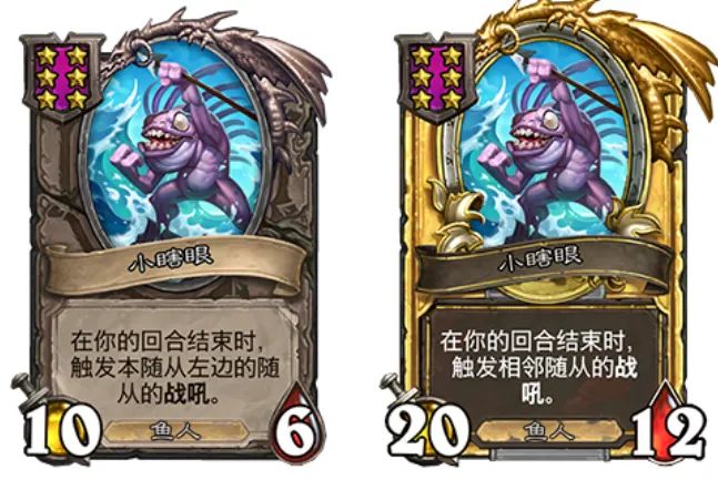 改动后:战吼:使你的其他鱼人获得+3/+4。