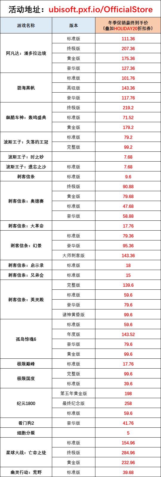 育碧商城秋季促銷活動已經開啓,在結賬時輸入優惠代碼 HOLIDAY20,還可以再減 20%!活動網址: