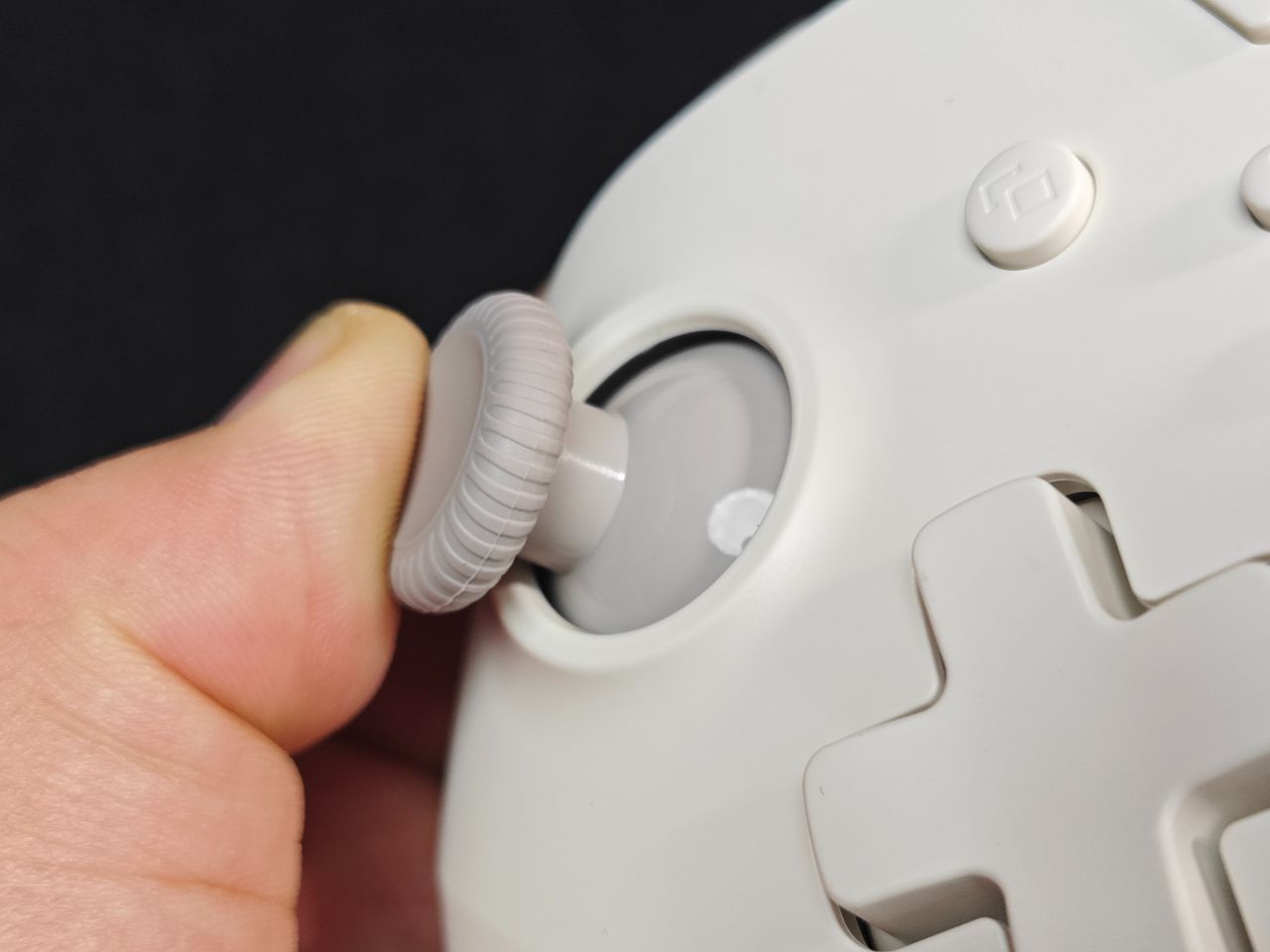 沙漠狐用的是500萬次壽命的霍爾搖桿,搖桿柱爲pom材質,比起普通塑料更加防磨順滑。不過個人建議還是在搖桿柱纏上一圈特氟龍膠帶使用,能夠加強打圈的順滑度及搖桿壽命。手柄搖桿非常好推開,中心阻尼做的不是非常緊,推開阻尼非常均勻,打圈體驗也非常完美,搖動過程中沒有出現異響及澀感。