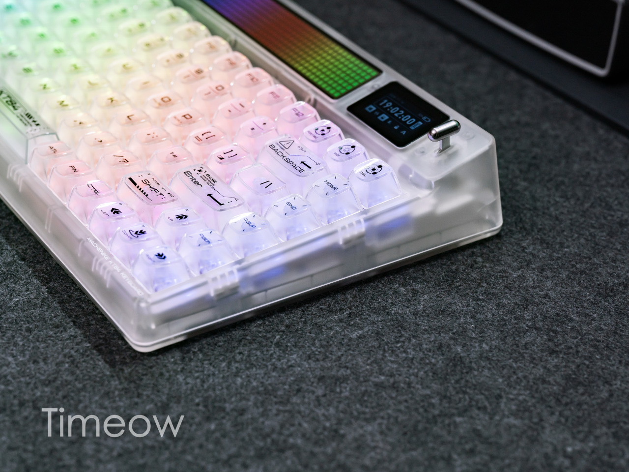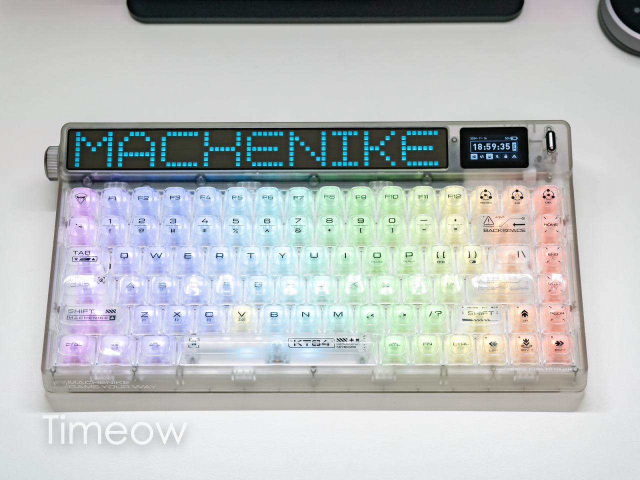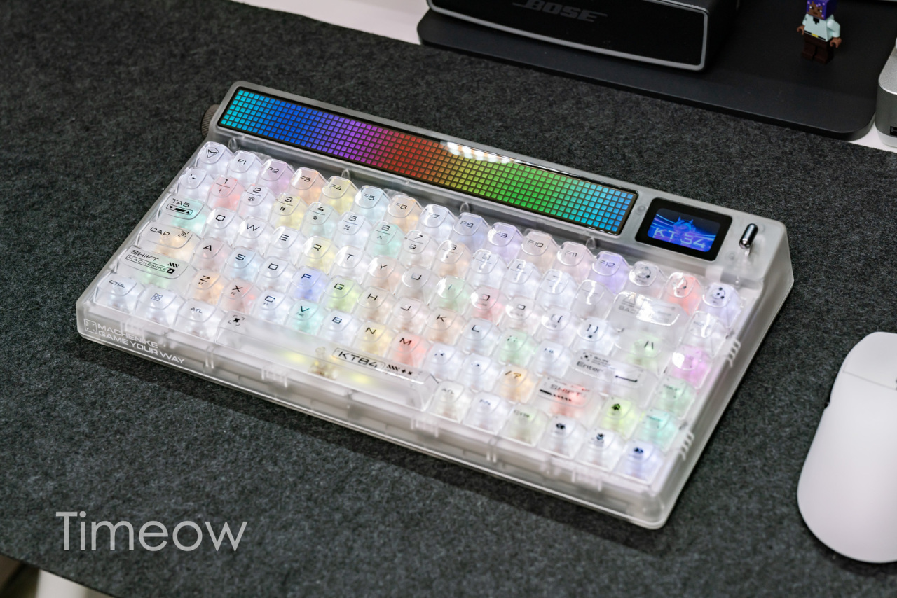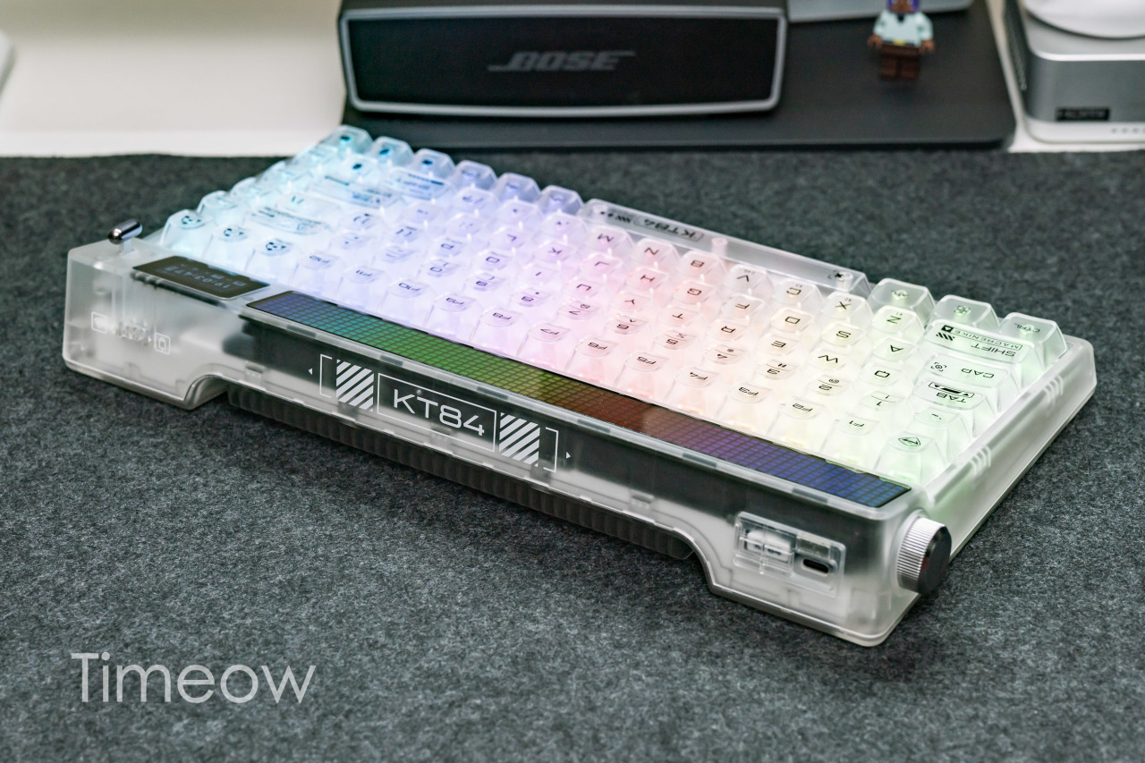 机械师KT84这把机械键盘实在是太漂亮了:从透明外壳、RGB、LED点阵屏再到键帽,高颜值和精致感都充满了这把机械键盘。