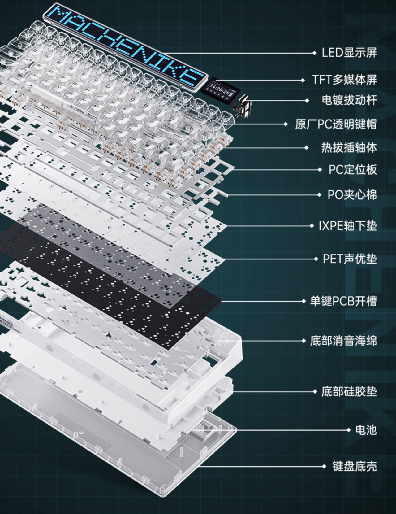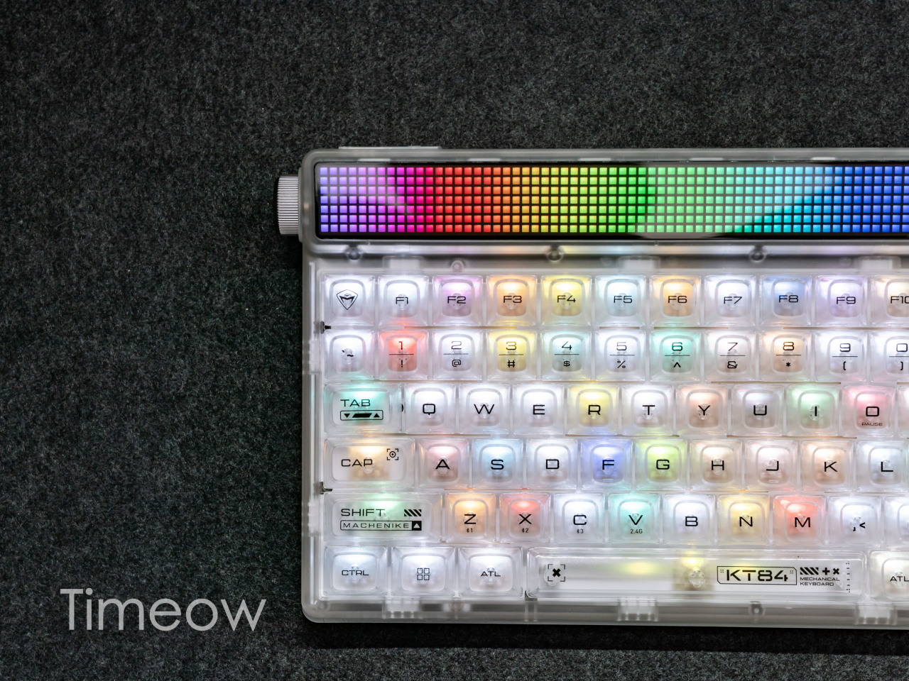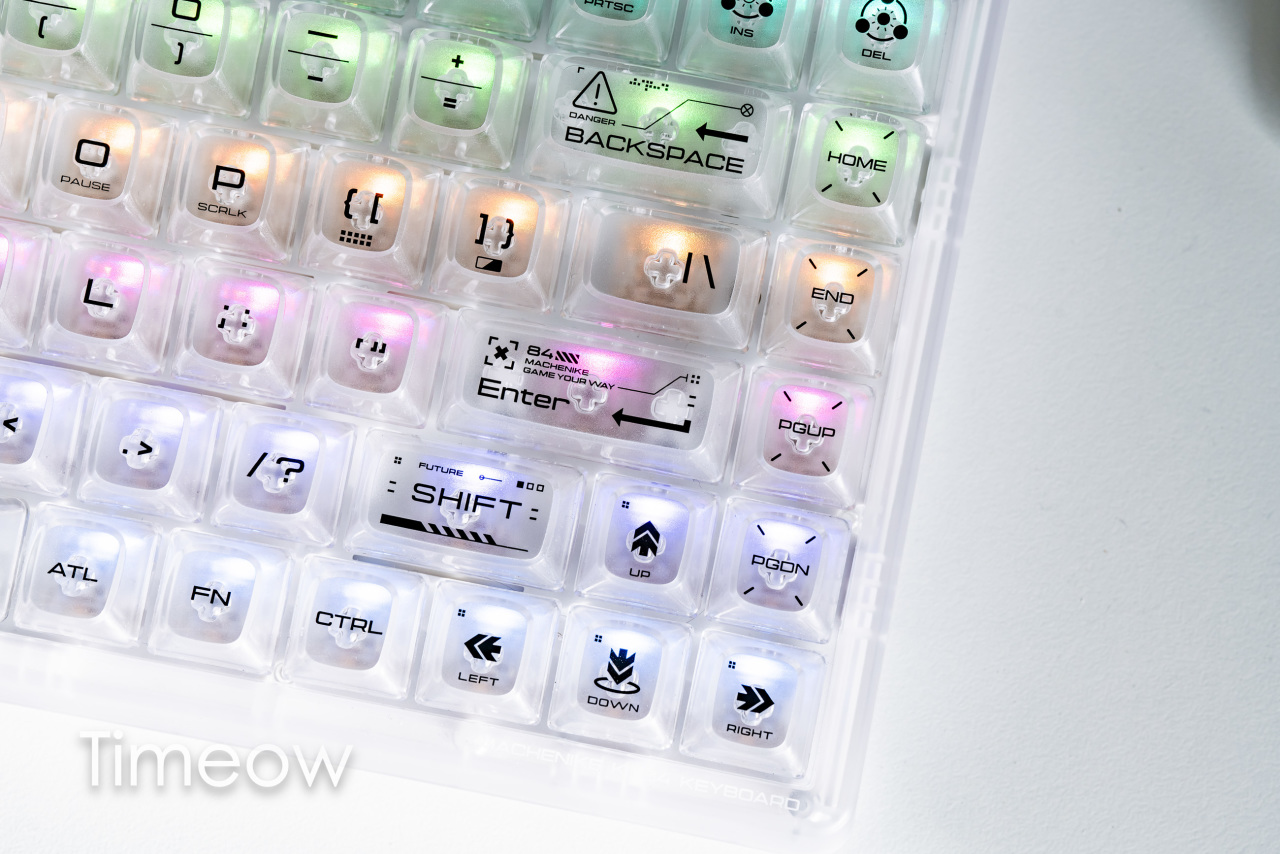 机械师KT84这把机械键盘实在是太漂亮了:从透明外壳、RGB、LED点阵屏再到键帽,高颜值和精致感都充满了这把机械键盘。