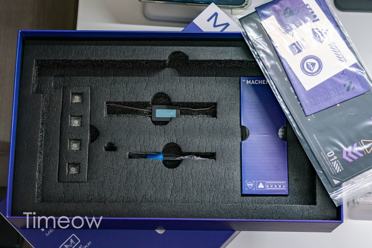 四颗替换轴体、拆键拔轴器、编织“电话线”充电数据线,以及一把清洁小刷子。