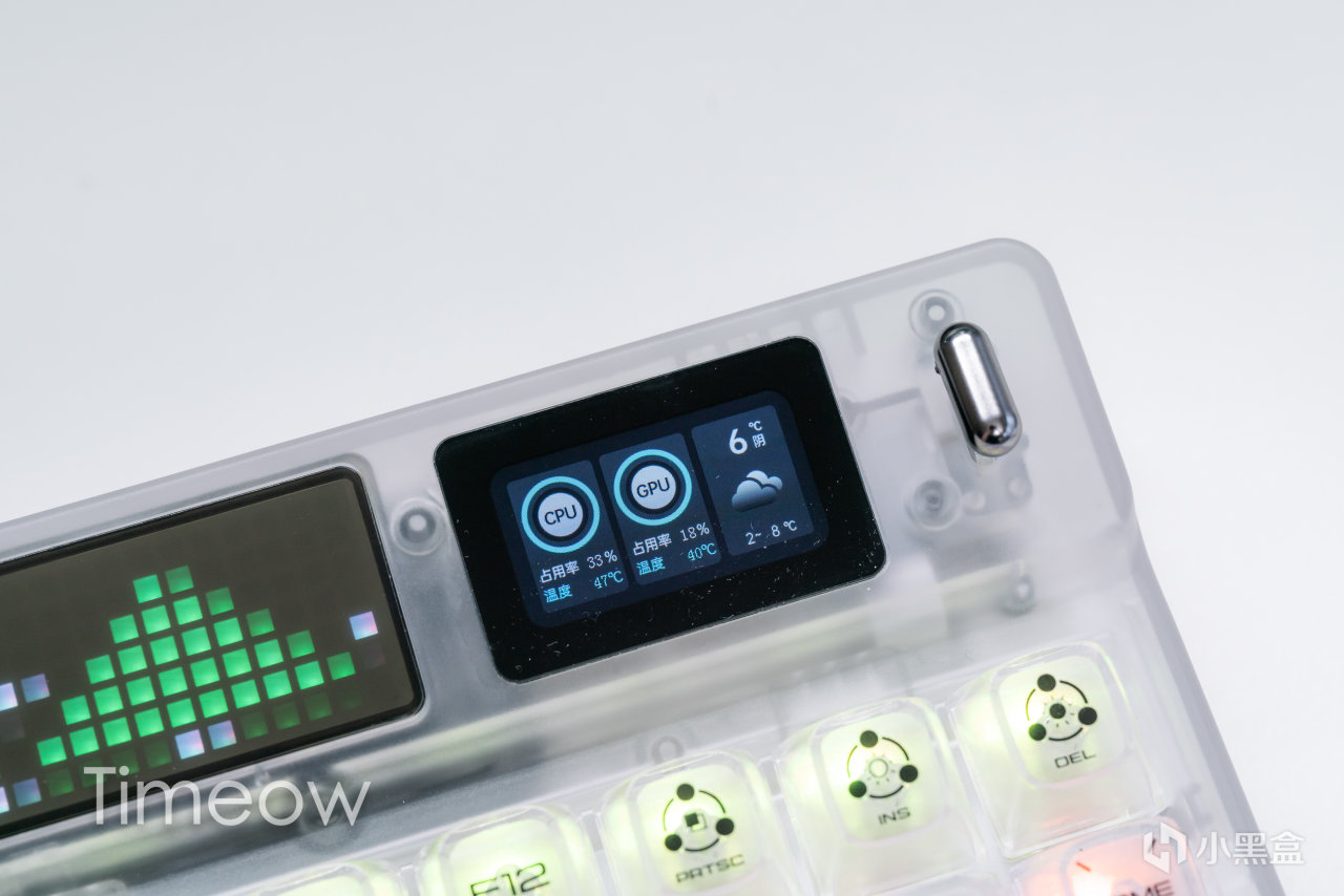 右边的TFT小屏可以显示时间、动图、系统信息和天气等,同时也是键盘系统设置的显示屏,具有相当不错的实用性。