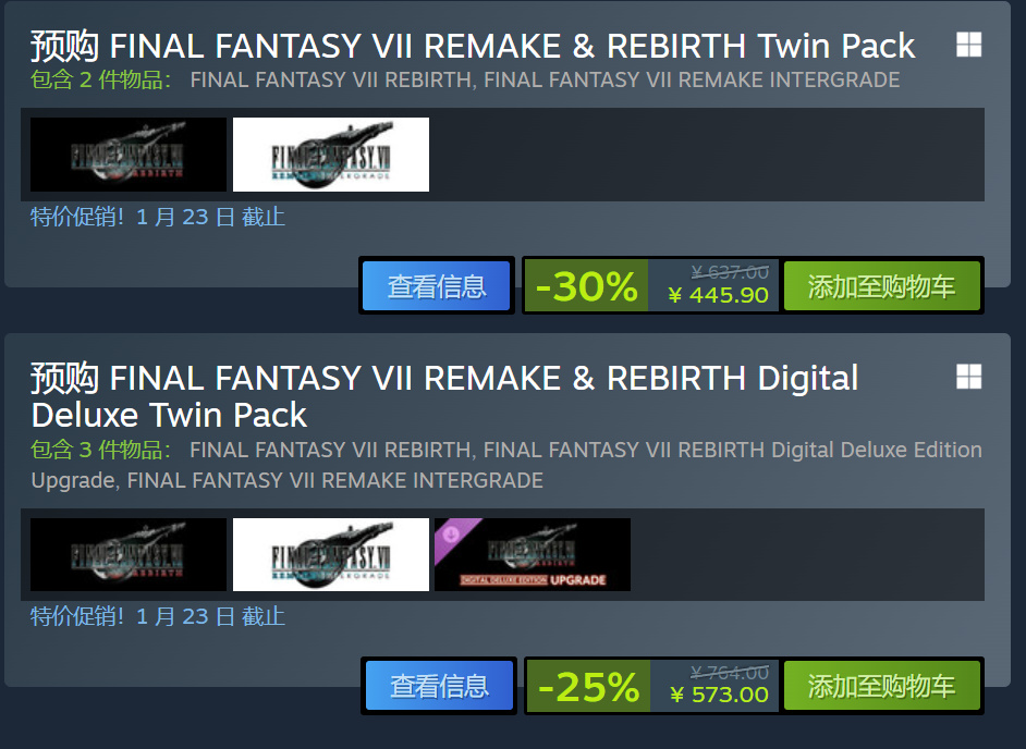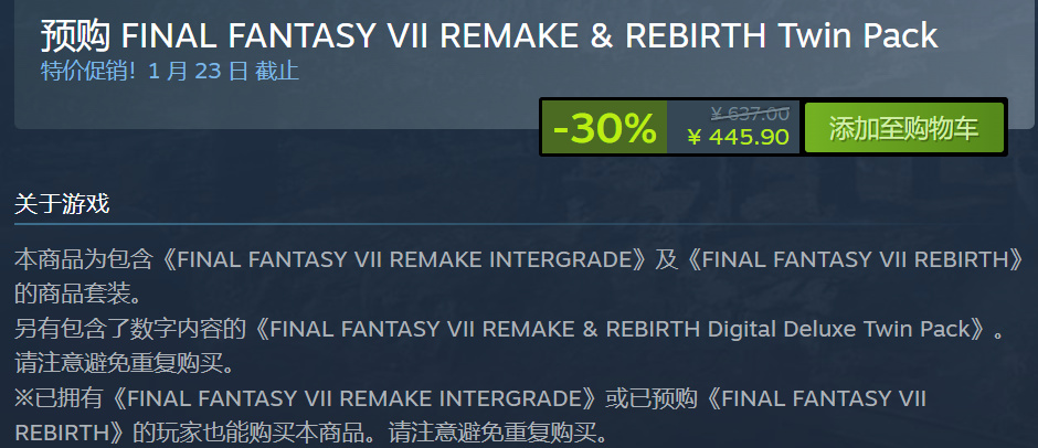 游戏这次还多了7重制版和重生的捆绑包,可以选择豪华版捆绑包,也可以选择标准版捆绑包,价格算是新低了,7重制刚刚宣布永降