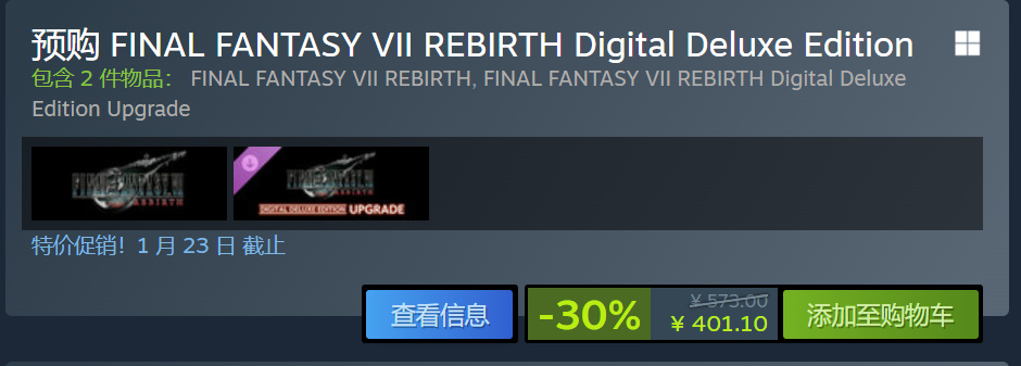 距离最终幻想7重生上线steam还有几周时间,se也是在启动了预售