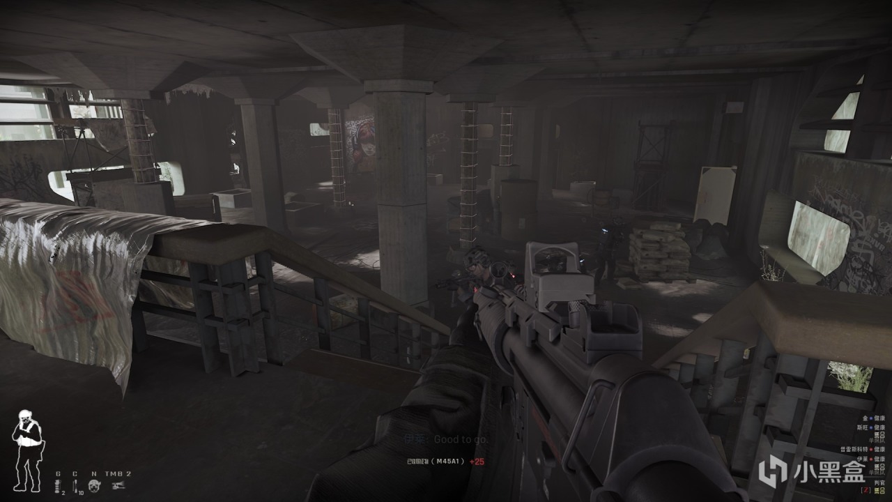 游戏里最让人恐惧的可能就是未知了,而门的后面通常隐匿着各种危险和恐怖分子黑洞洞的枪管。所以我们对待各种门需要格外的慎重,最基础的上锁需要撬锁不要忘记。然后就是电视剧里面经典的霰弹枪直接破坏门锁,或者直接简单粗暴的一脚踹开。需要注意的是这里我们和敌人一样的脆弱,稍有不慎就会躺倒在地。和真人游玩的时候,我们需要大量的沟通。每进一扇门都需要详细的策略,而且需要提前预设多种结局。而我们单人游玩和AI组队的时候,我们作为指挥官也要给出各种可能详细的指引。通过鼠标中键我们可以有更多的指令。