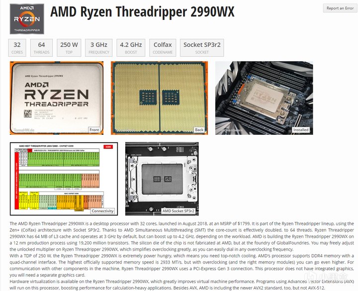 不过好像ZEN+的线程撕裂者就是两个完整ZEN+ DIE了,所以放出了4DIE完整版的2990WX 32核出来给线程撕裂者了: