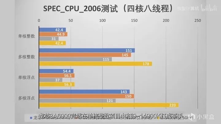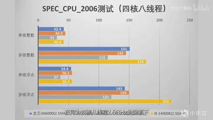 《在同为四核八线程2.5G的限制下,龙芯3A6000竟然在单核整数项目中和I9 14900K打成平手》(多核还是被吊锤)