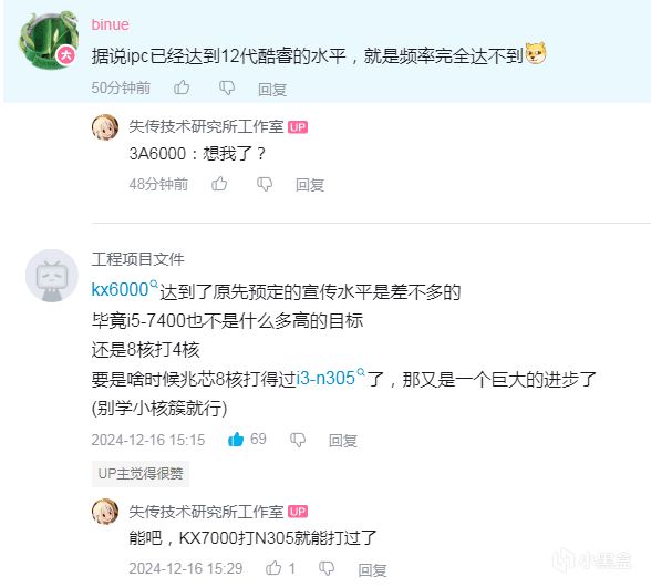 不过这期牢胡真说了,没提IPC,是直接说的性能达到12代I5或I7水平,咱很期待最后会不会复刻经典名场面