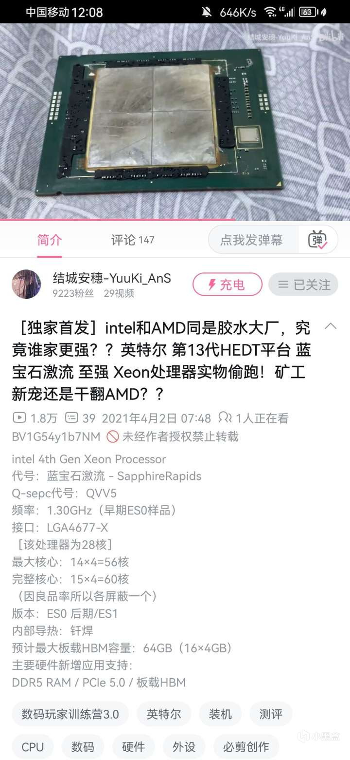 垃圾佬: 其实你仔细看这个4DIE的单DIE面积也相当不小了 你开过AMD ZEN1的盖没