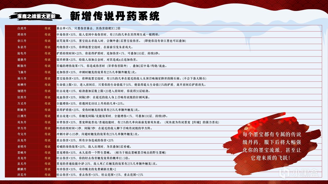新增丹藥系統:每個墨寶都有專屬的傳說級丹藥,服下後將大幅強化你的墨寶流派,迎來質變!