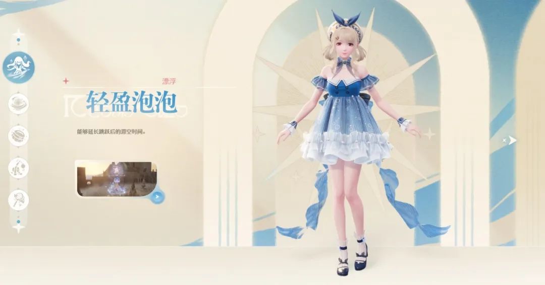 目前《無限暖暖》大部分探索收集要素以及劇情副本等,都圍繞着跳跳樂核心進行設計,甚至還有不少功能性服裝,是有跳躍功能強化的,比如開服推出的限定套裝之一“花漾夢縈”,當玩家在空中再次按下跳躍進入漂浮狀態時,連續按下跳躍可維持漂浮狀態。