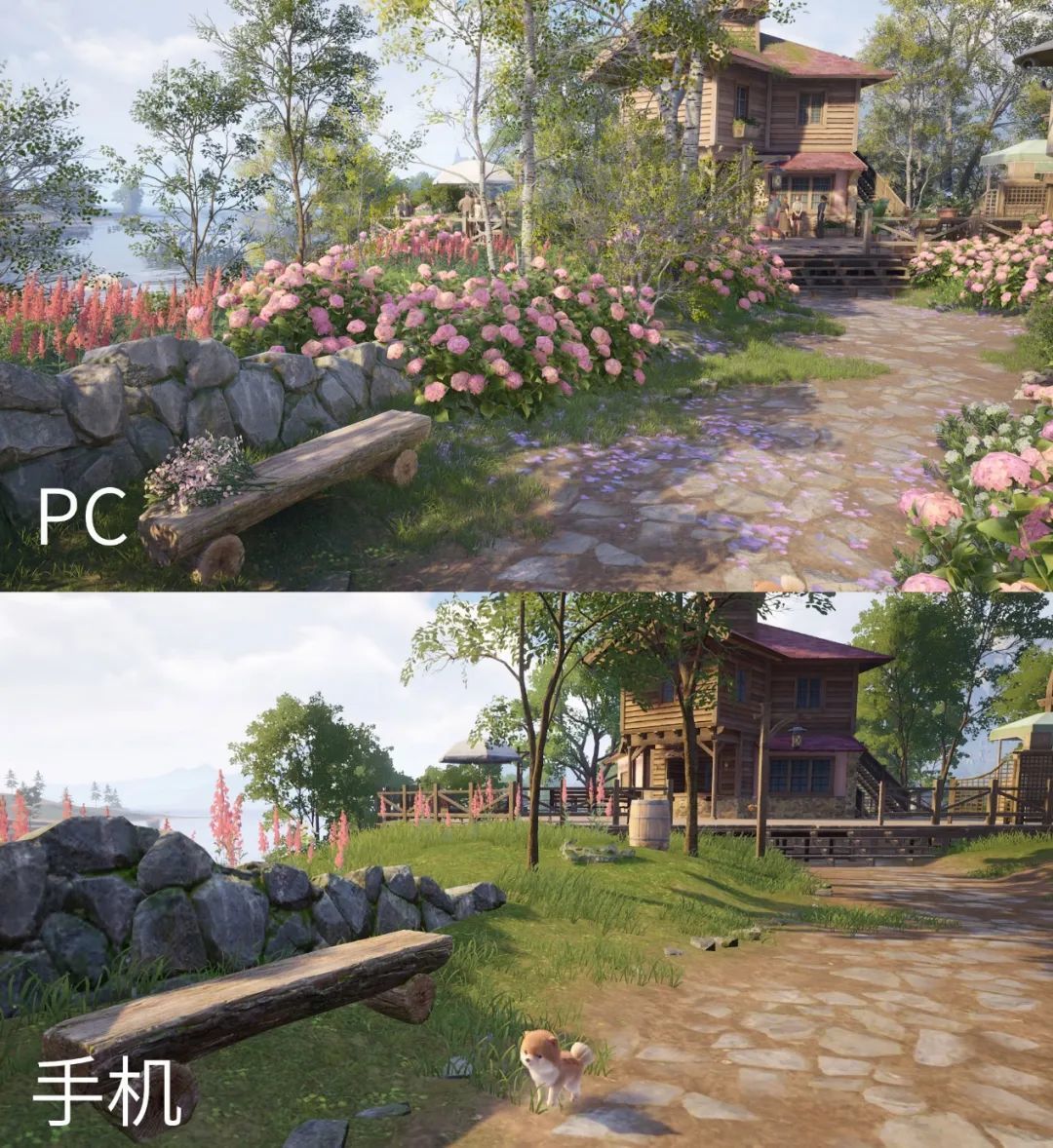 而這一切的美景,移動端的玩家難得一見。可能是爲了兼顧移動端的設備性能,在開服前幾天,移動端場景中的貼圖和模型被大幅度削減,最直觀的感受就是:花花草草都不見了,地面光禿禿的,花團錦簇的花願鎮?不存在的,只有光禿禿的鄉村小鎮;石柱上的花盆?不存在的,只有一根光溜溜的石柱;枝繁葉茂的景觀樹?不存在的,樹也給你砍幾顆。