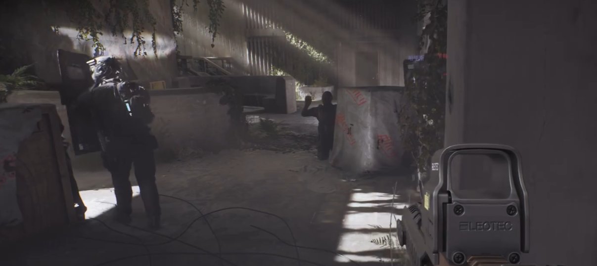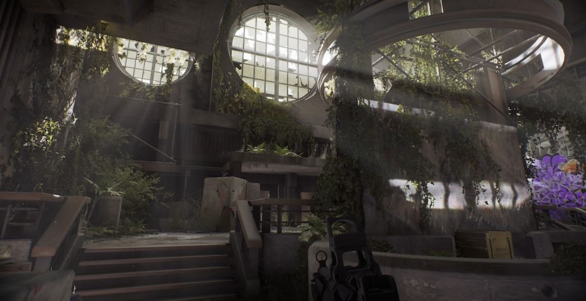 最后一张图在废墟,虽然是室内,但巨大的房间让我们找不到火力点,四通八达的门让防守格外漏风。整体来说,比前面两张图更方便探索,但实际上探索的压力大非常多