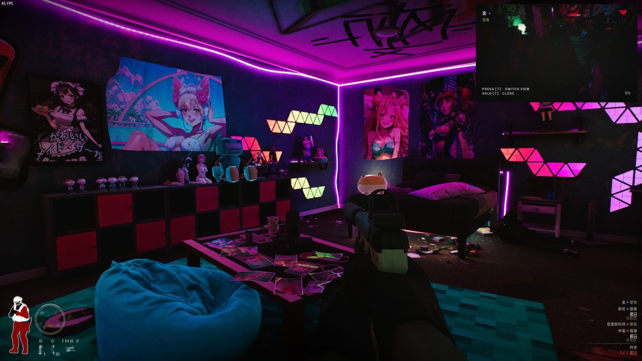 黑夜之中,微弱的手电筒无法带来光明,不知道从哪就冒出火光然后光速倒地。大雨之中,不仅是朦胧的雾气,还有枪上的水滴,护目镜上的水流。墙上的涂鸦,满桌的设备和原料,恐怖的氛围彰显着邪恶与犯罪。甚至匪徒还有电竞房,这设备,这灯光,还有这手办,我只能说确实没想到能真实到这个地步,全部没收给我。