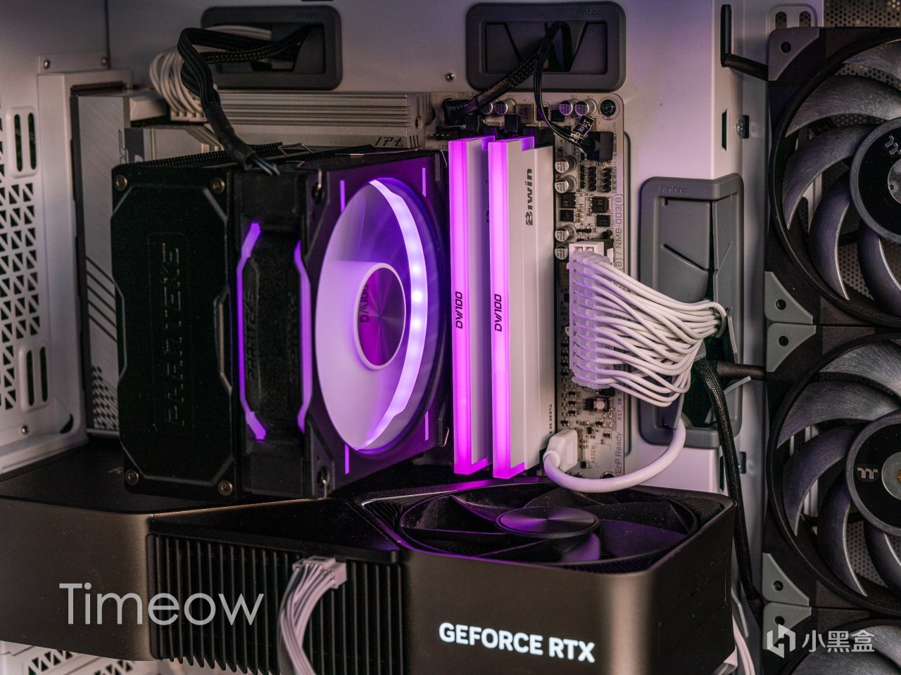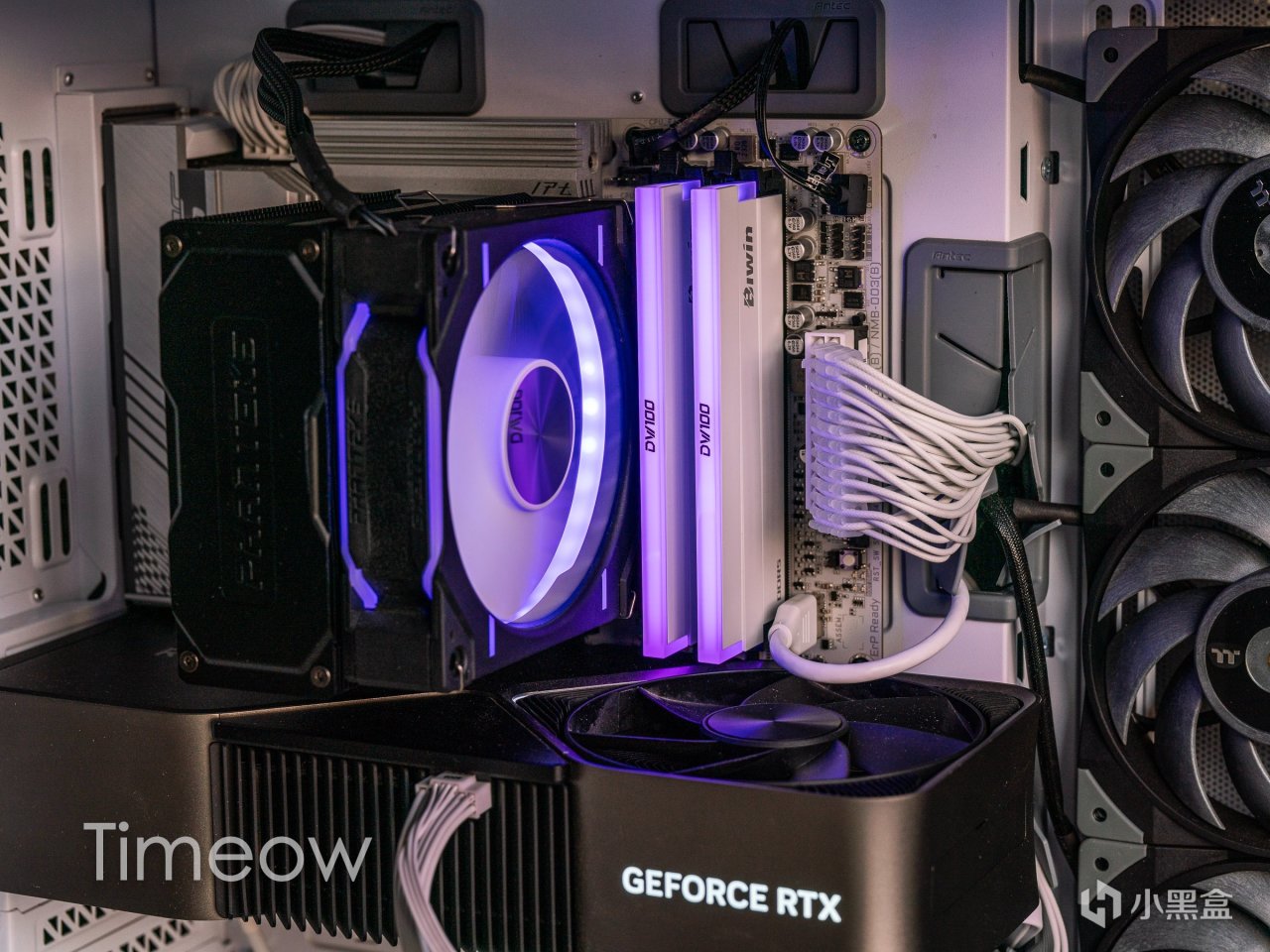 它最大的看点就是特挑海力士A-die、CL28的超低时序、厚实的分层散热片,以及超漂亮的RGB灯效了。