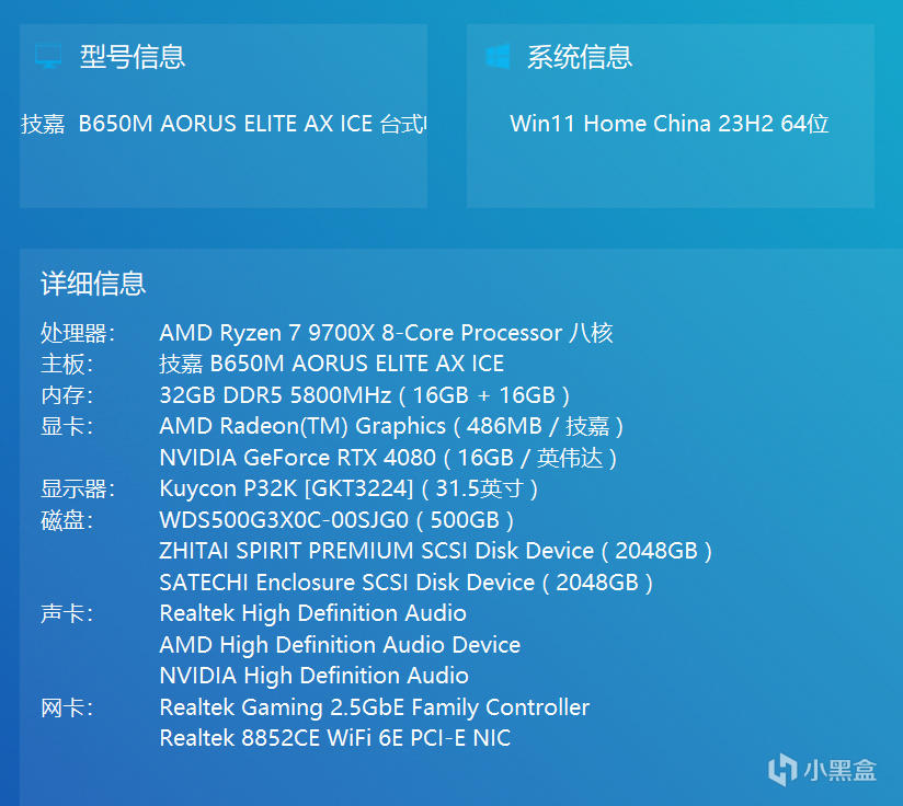 9700X+B650M这一组合还是很均衡的,给大家看看我的配置单: