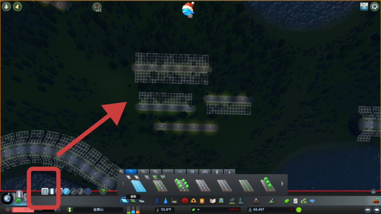 还记得城市刚开始建设的时候,城市什么也没有,只有两条进出的高速和一个造路按钮,虽然只能造初始道路,但对于城市初期也足够了。
