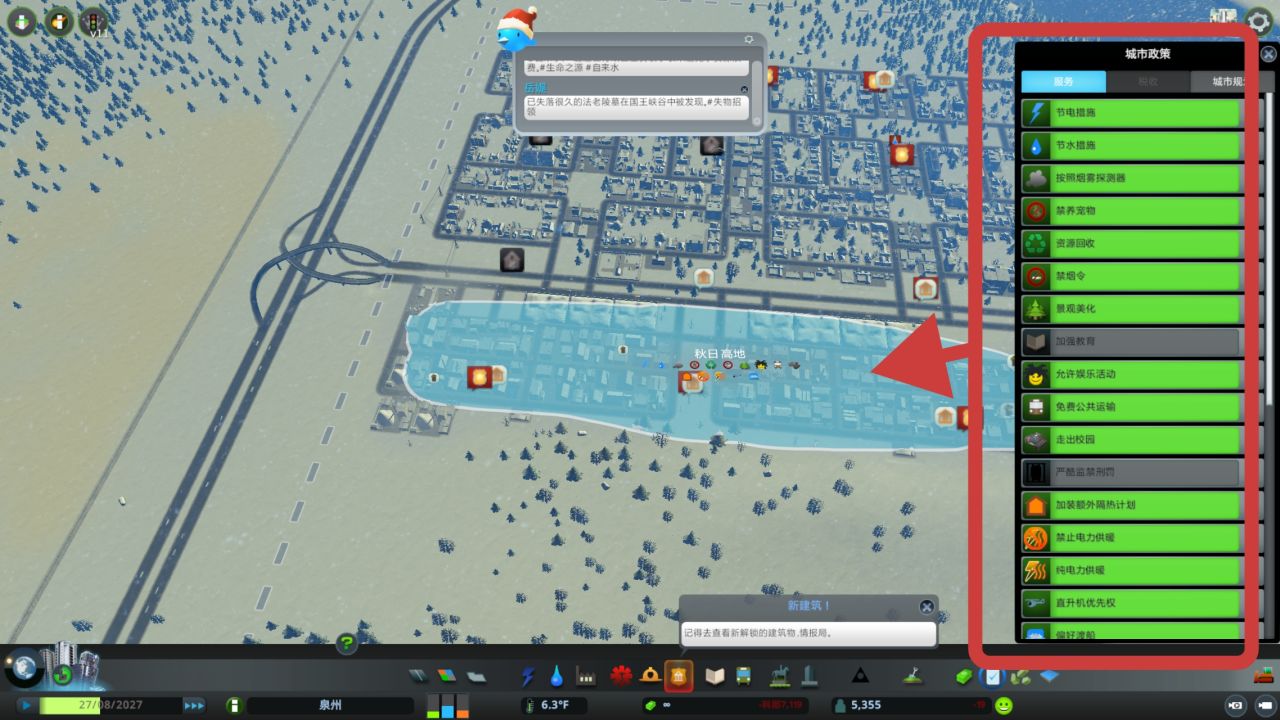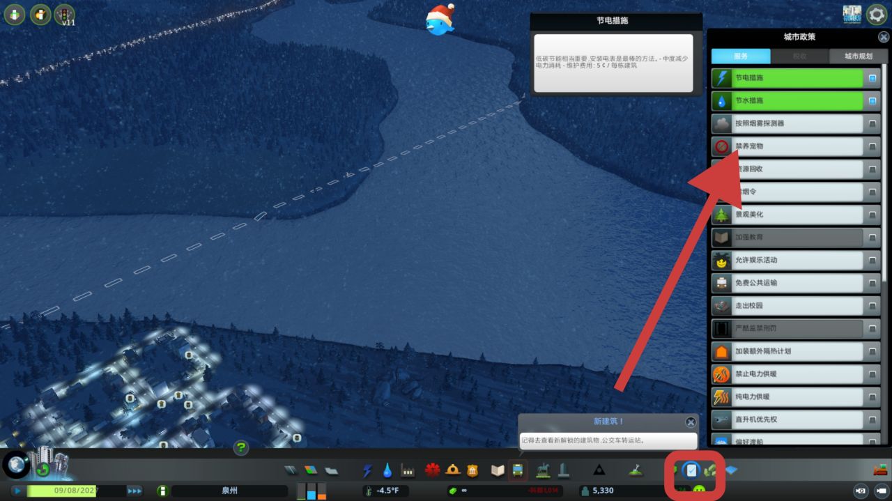 政策按钮中的各项政策可以帮助你建立您城市的重点发展区域