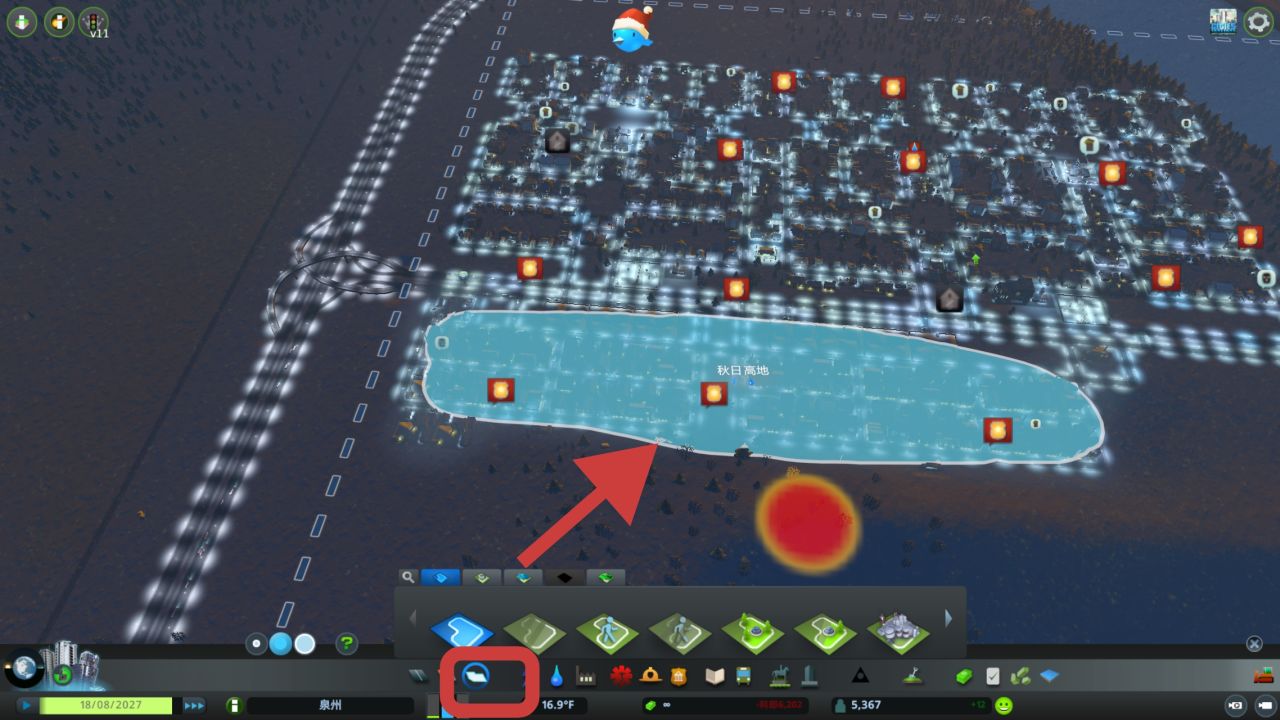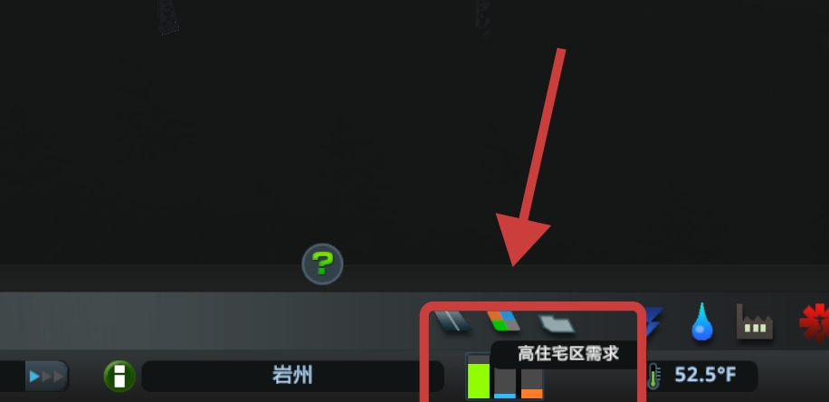 界面左下的小格子代表了居民需求,颜色越高代表需求越高,颜色同规划相同。例如这里的绿色高,代表高住宅需求,我们就要多划绿色的住宅区划进行满足。