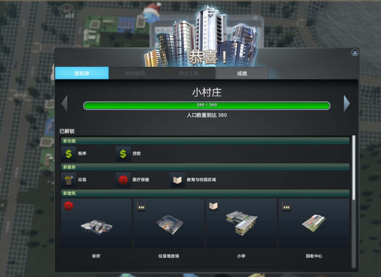 当人口达到340.650.1100.1800.3800.5500.8000.13000.16000.26000.34000.50000.65000时,城市会升级,解锁更多服务与土地