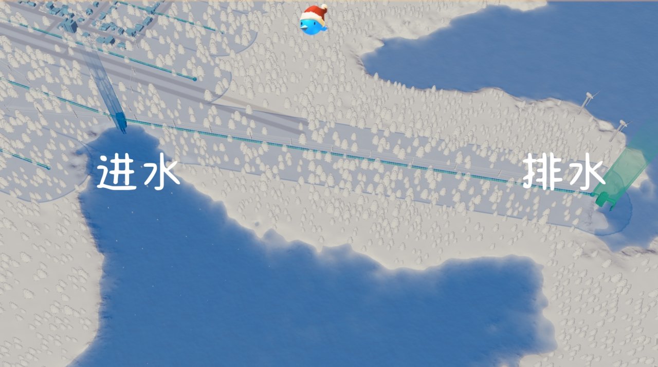 对于没有河流的地图,可将进水和排水放置在两个分隔开的湖泊中,避免污染