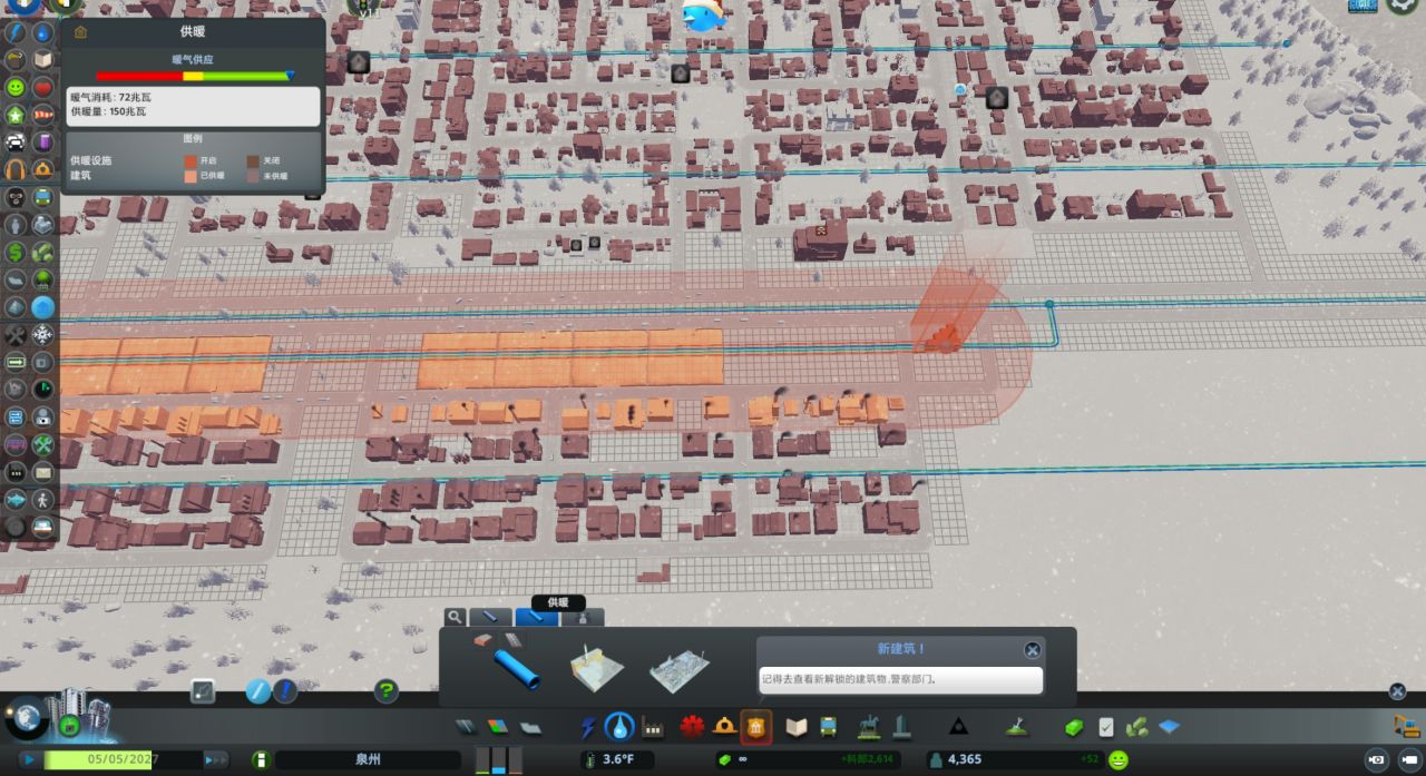 顺带一提,对于冬季地图,除了供水供电外,还需要供暖(差不多是可以加热的水管,也能供水)