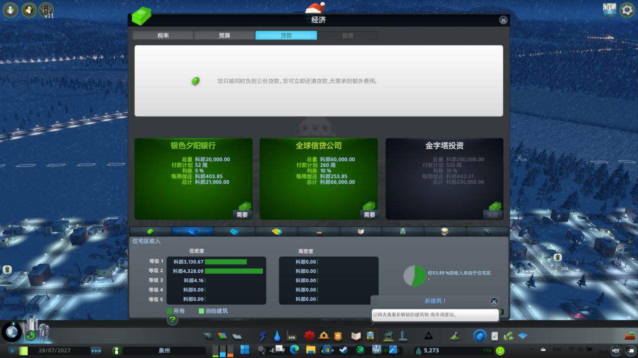 第三项,贷款,城市最多有三份贷款,每份款项不一,贷的款越多,还款周期越长,债率越高,一般不建议新手贷款,容易破产