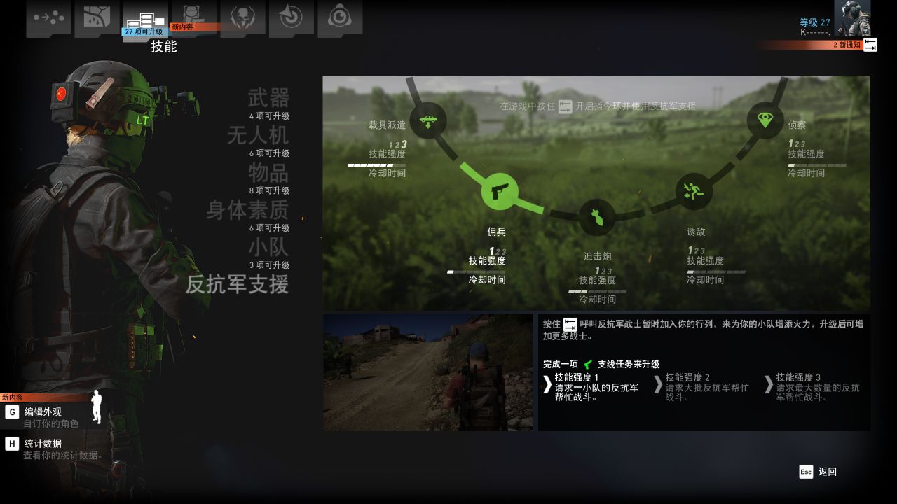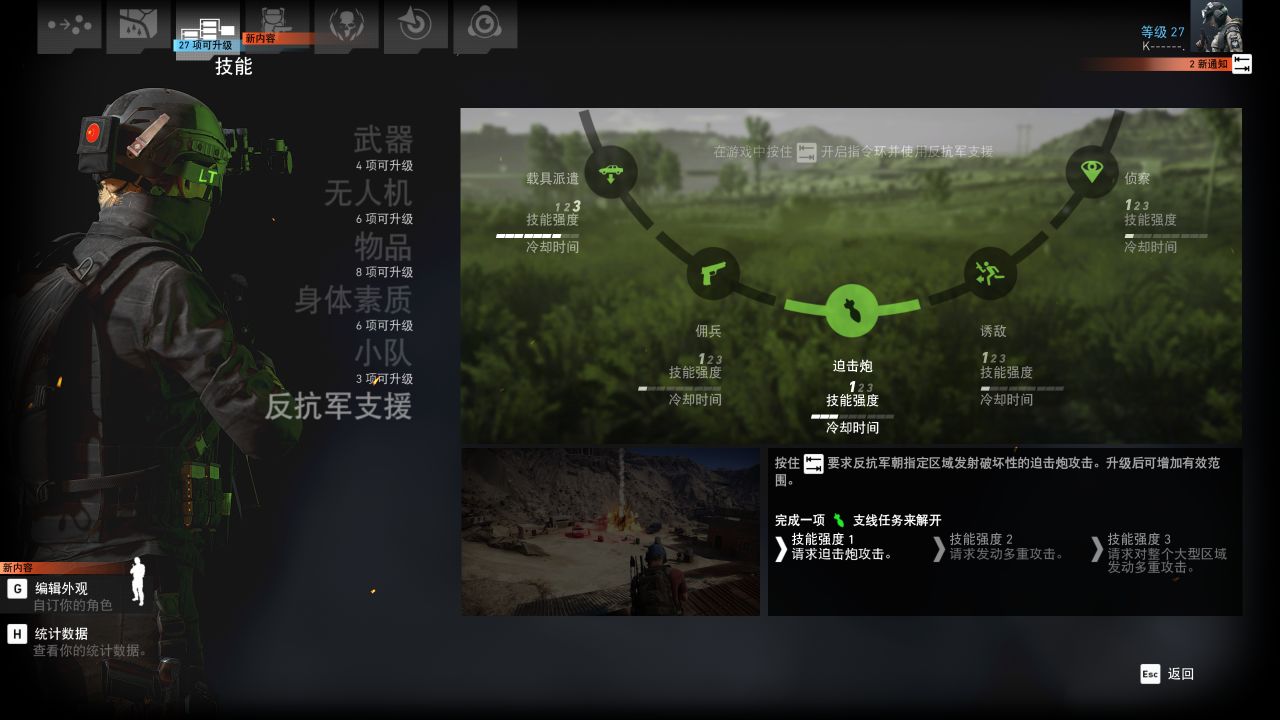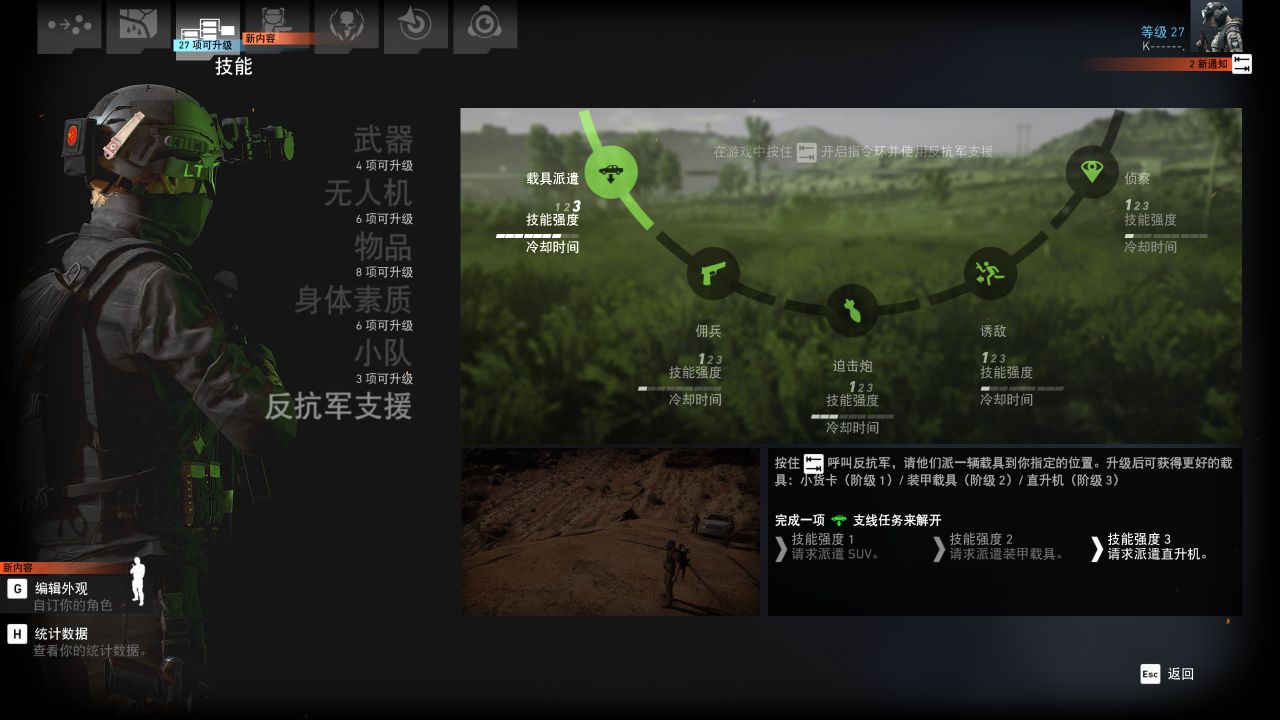 反抗军玩法这个就比较丰富,包括招呼载具,呼叫支援或者是火力支援,对付敌人多的关卡很有帮助,做反抗军任务可以获得能力