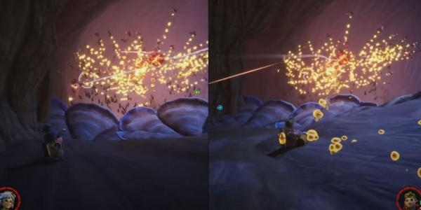 生命值下降一半后,蜂后会命令黄蜂群像炸弹一样砸向地面,爆炸的同时向四周扩散圆环。而且黄蜂也会组成剪刀的形式在地上来回转悠。在此期间,两位玩家的视角会变成统一的俯视视角,等再次分屏后,两人就需要摧毁蜂后剩余的护甲。