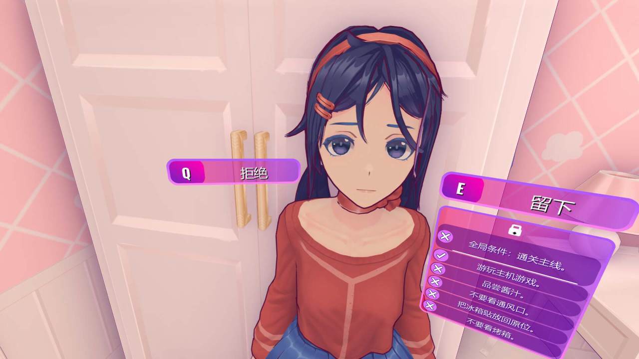 你走到了衣柜前,强行要去调查,米塔挡在了你的面前,然后她给出了你两个选择,你是否要打开柜子一探究竟,还是说不管不顾,沉迷在这温柔乡里。