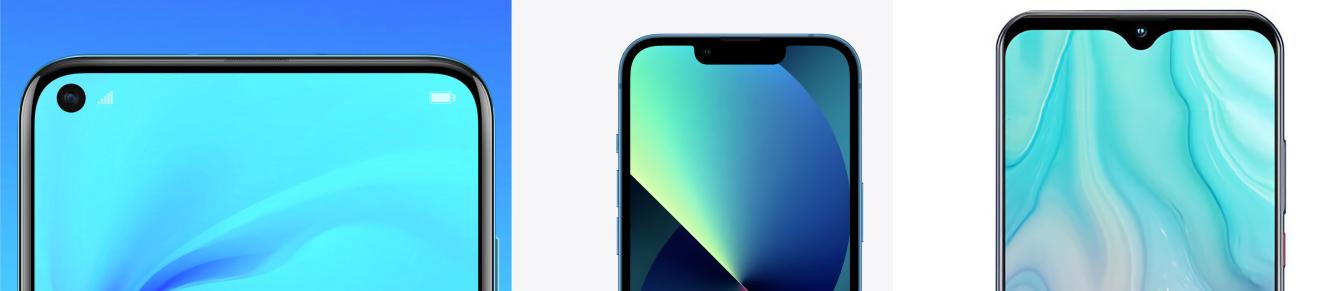 因此,市面上出现了很多异形屏,比如刘海、水滴、打孔等。这些异形屏虽然有助于提升屏占比,但是其代价就是会遮挡部分屏幕显示区域。