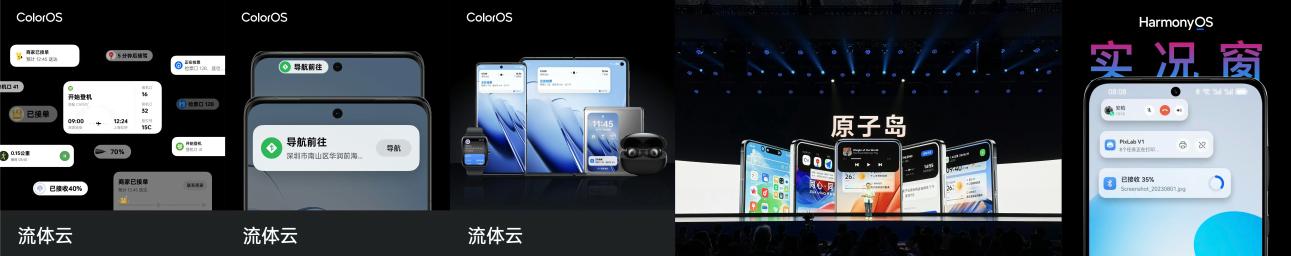 比较奇怪的是,苹果灵动岛发布很长一段时间后,安卓厂商们却开始纷纷选择上岛,而且口碑也逐渐变好。比如ColorOS 14的流体云、OriginOS 5的原子岛、HarmonyOS 4的实况窗。