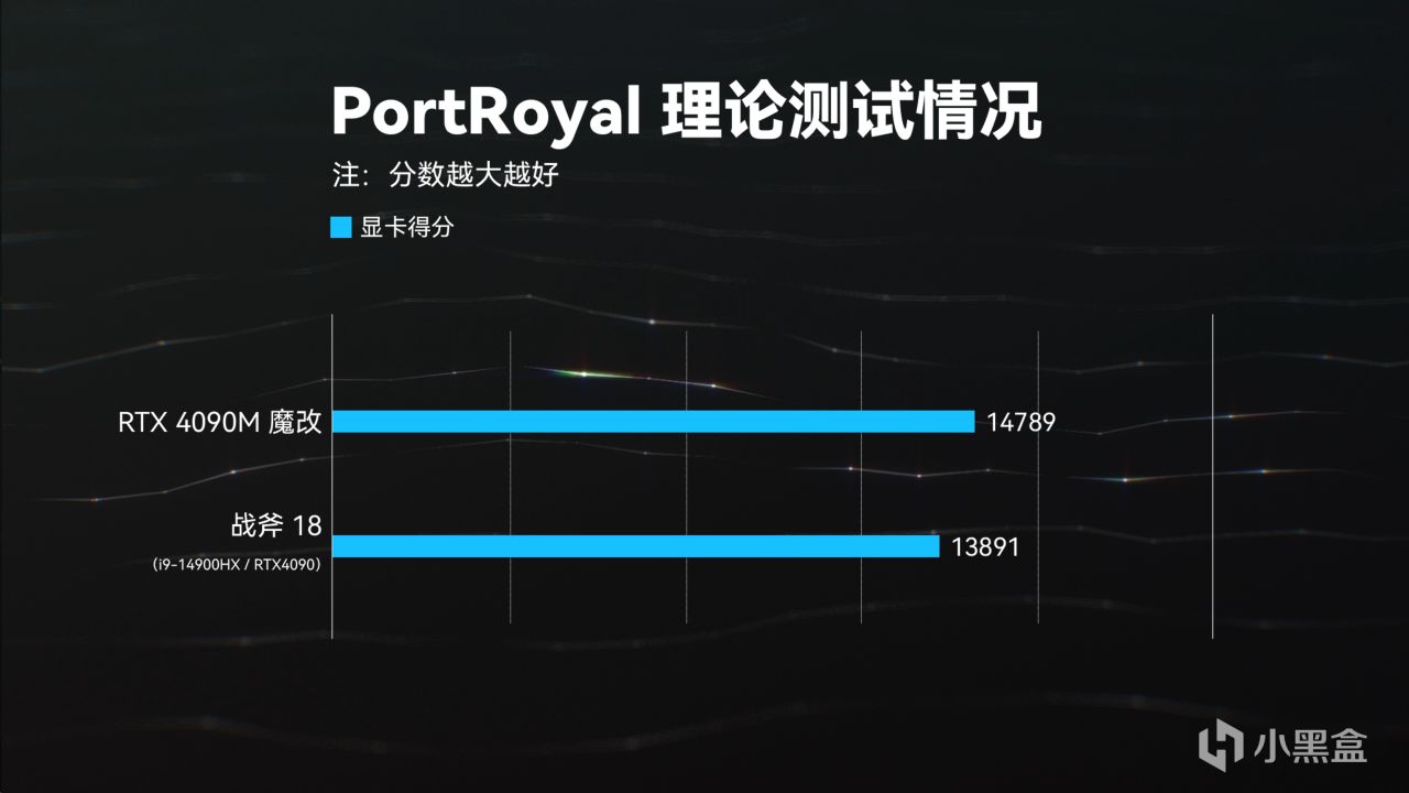 然後是表現光追性能的理論測試中,魔改的4090M最終是獲得了14789的得分,對比戰斧18的13891的得分,差距在6%左右,這裏需要注意一下,因爲我是搭建的PC平臺,散熱風道肯定都會比筆記本更好,還有其他因素存在,本身就不是一個很公平的對比,所以纔會讓你覺得,怎麼魔改的4090M性能還可以的錯覺,建議你謹慎看完。而從三個理論測試中,大家也可以看到魔改的4090M性能大概是和4070TI差不多。