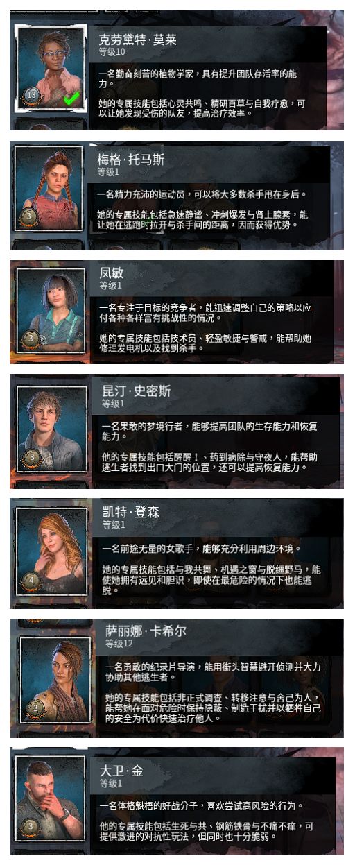 1. 人類方:克勞黛特/托馬斯/凱特/薩麗娜/鳳敏/妮婭/大衛/昆汀。