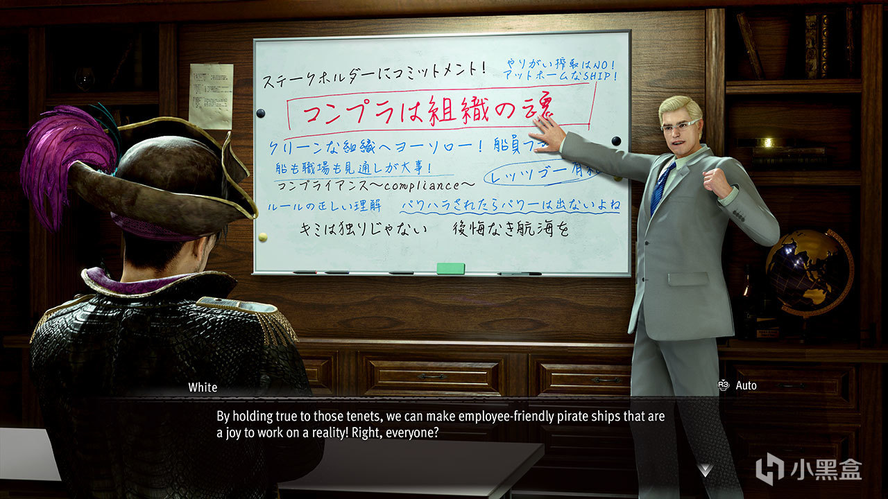 真島遇見了一位因過時且粗暴的作風而被同乘船員們拋棄的船長。當兩人正要討論是哪裏出了問題時,一個自稱經營諮詢公司的男人出現在了他們的面前。於是,真島們開始接受海盜行業的合規進修,學習如何成爲一個好船長。努力解決海盜行業特有的案例問題,成爲適應新時代的合格船長!
