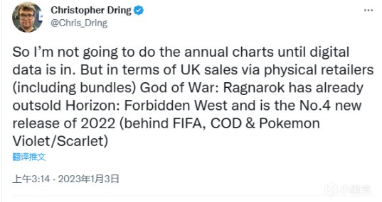 Christopher Dring近日在推特上發文,表示根據Gfk提供的數據,就英國地區的實體版遊戲銷量而言,《戰神5》的英國銷量已經超過了2月發售《地平線2》的銷量