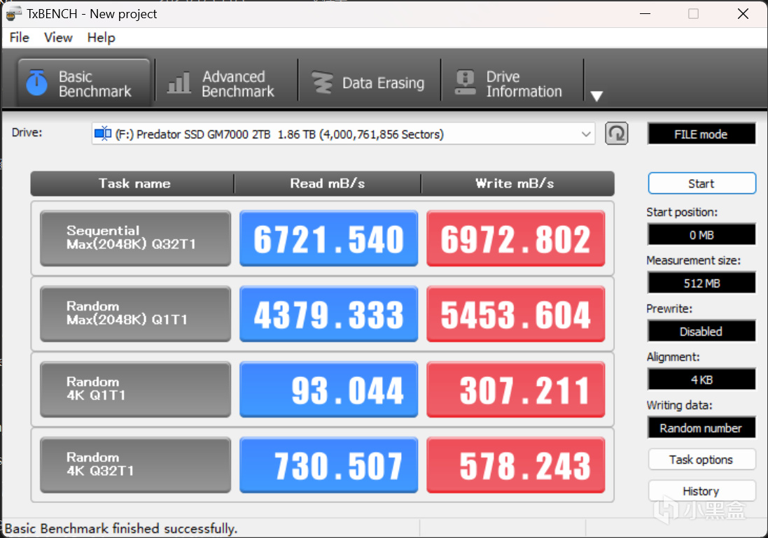 自帶獨立緩存,讀寫速度和隨機讀取速度都還不錯,6844/4945MB/s的讀寫速度屬於頂級一檔。4k隨機讀寫性能還行,頂級但不是NO.1。結合價格來看,有點……