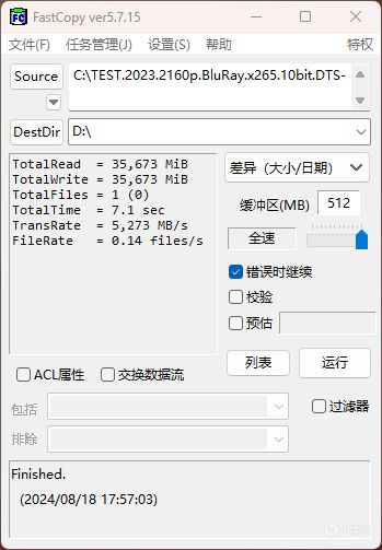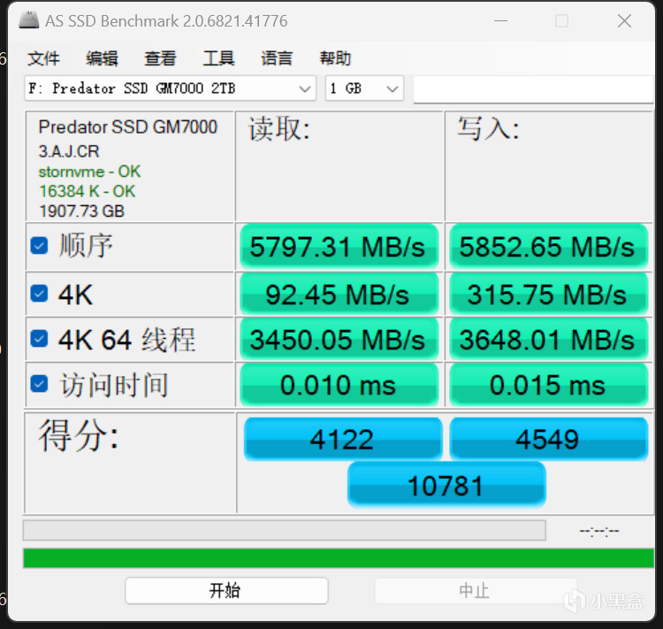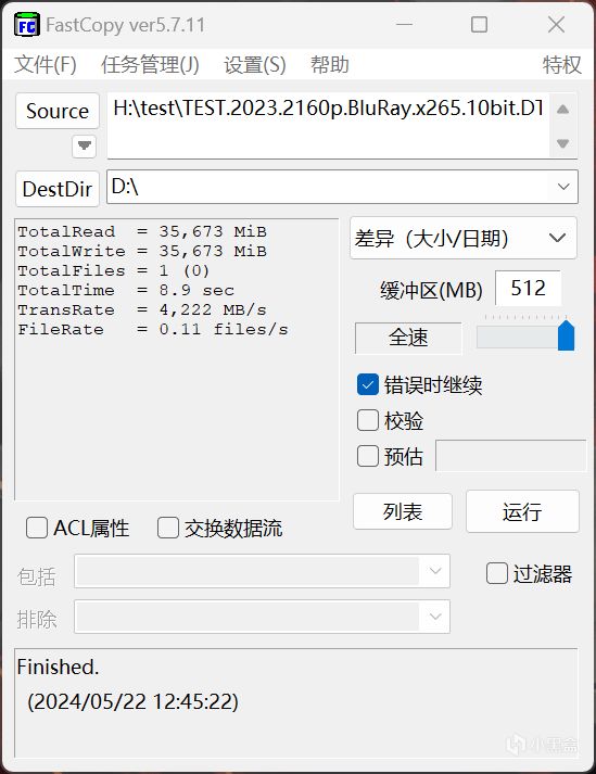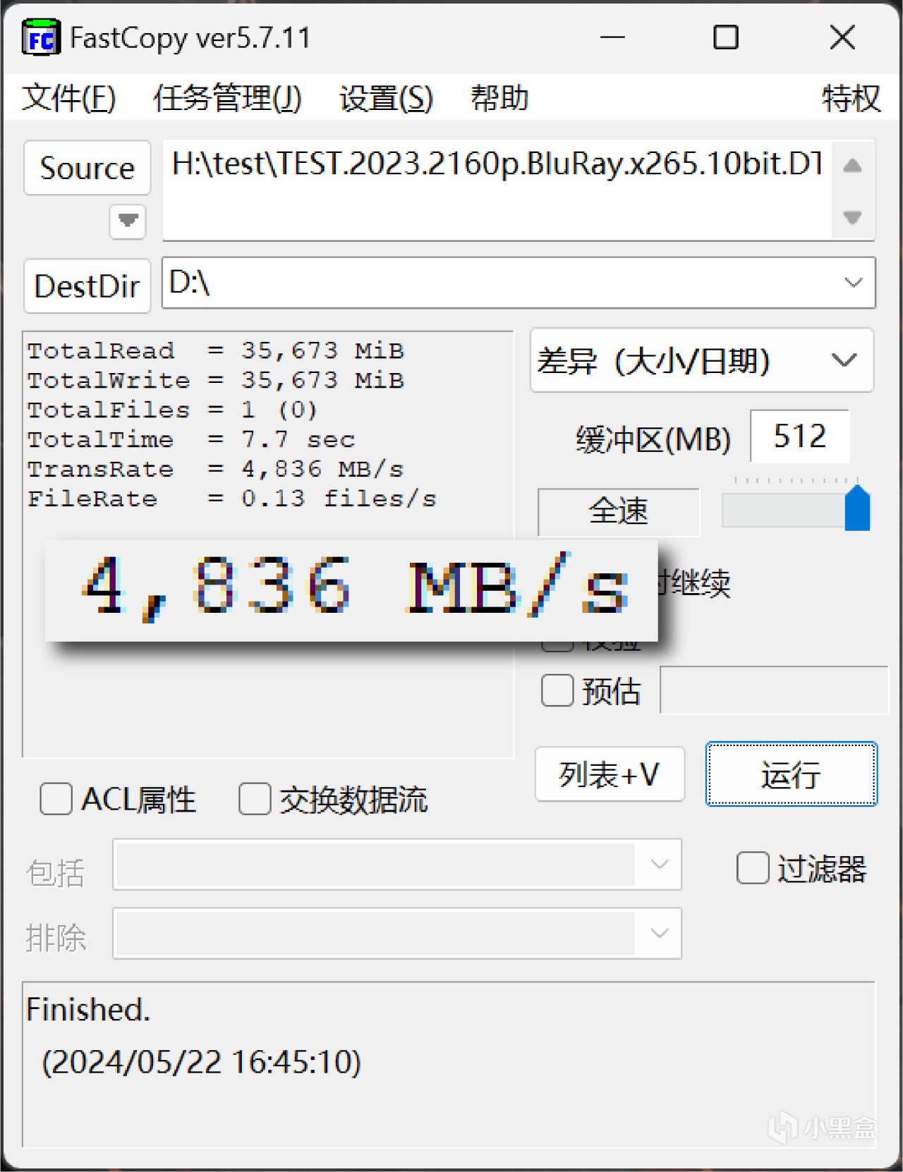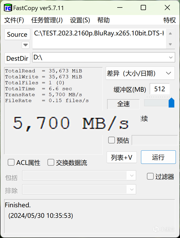 Fastcopy平均寫入速度爲5700MB/s,頂級。
