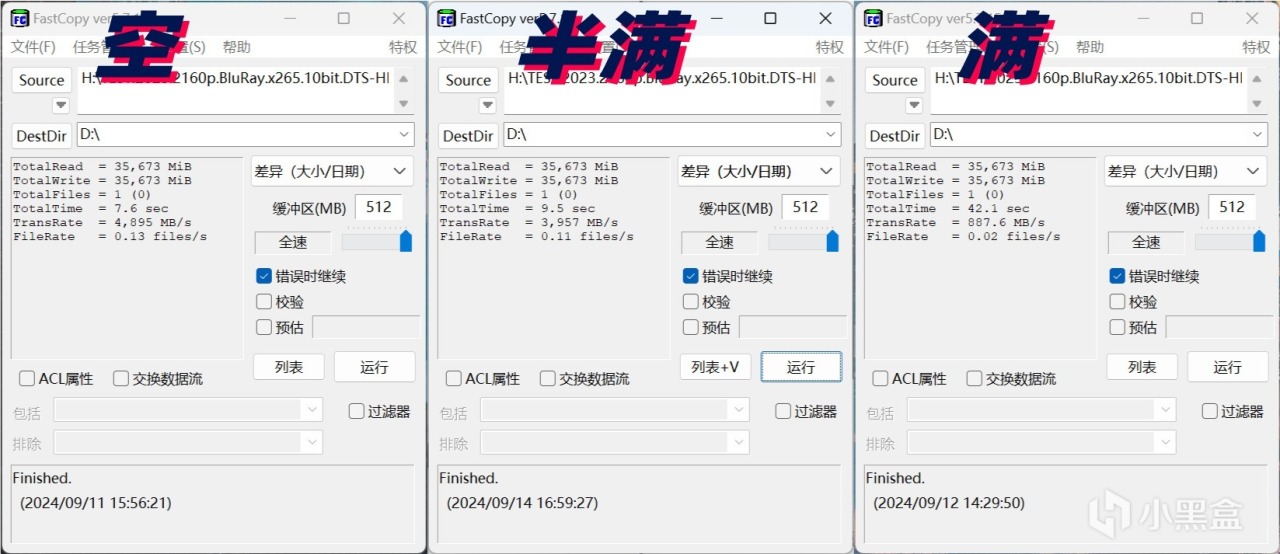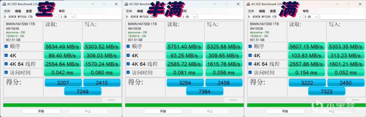 2TB版本有2GB獨立緩存,我把它作爲我的遊戲倉庫盤,還剩200多GB時,讀寫速度幾乎沒有劣化。