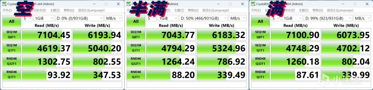 HMB無緩方案,intel平臺讀寫實測最高約7100/6200,AMD可能會更高一些。