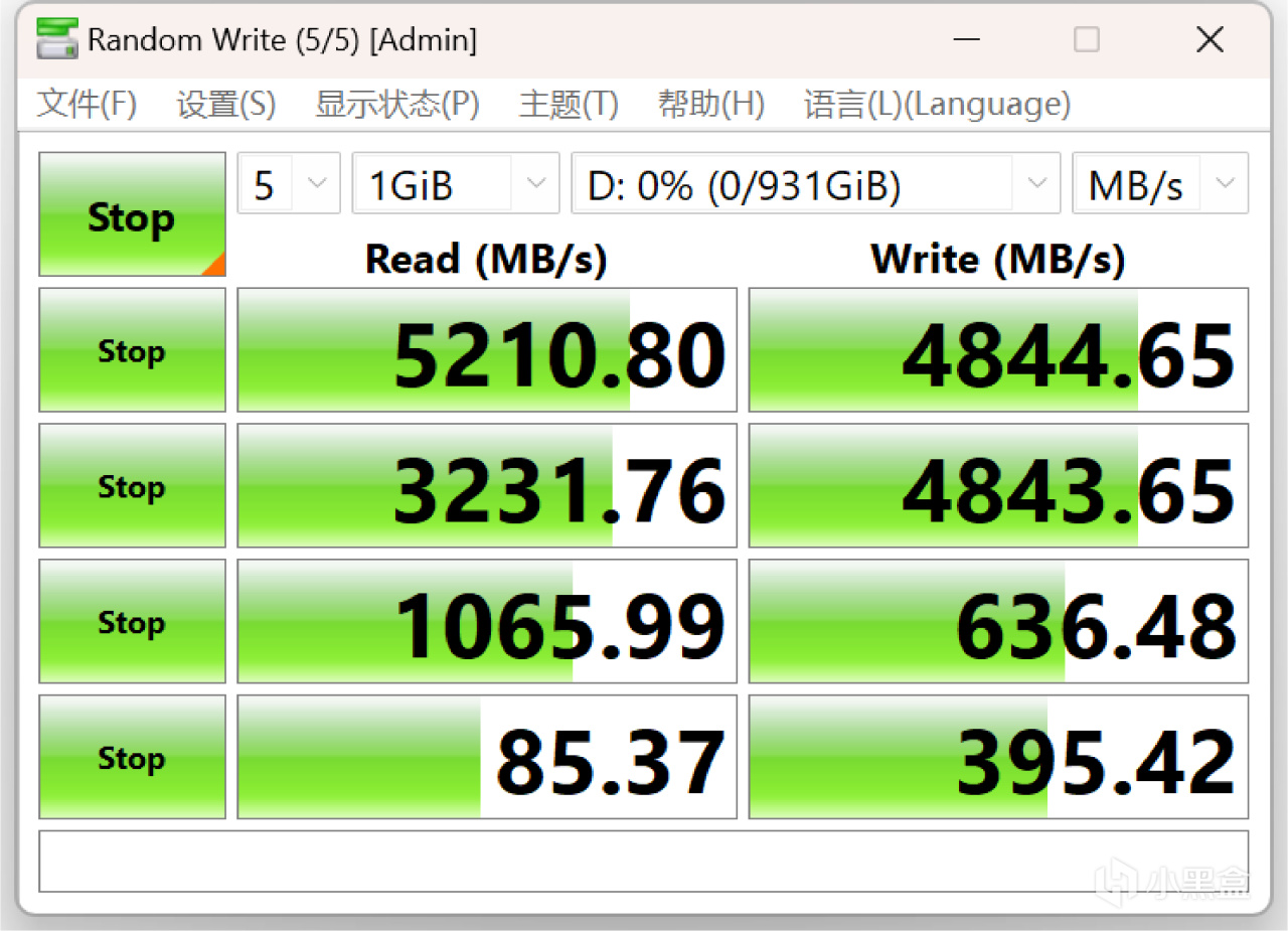 HMB無緩方案,intel平臺讀寫實測最高約5200/4800,AMD可能會更高一些。而且單線程4K隨機寫入速度395.42MB/s,也是同級別產品裏最強的那一檔,比280MB/s、330MB/s的強多啦。