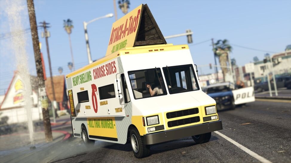 相較於3D 時期玩命速遞以及投擲交付,GTA Online 的配送至少在時間上就變得充裕,也沒有逐漸增加難度的升級系統。每送達 1 份披薩,可獲得 $4,000 + 1,000 RP 的獎勵,以及 $500 到 $1,000 不等的小費;在熱度條流盡前完成配送,可額外獲得 $20,000 的“熱氣新鮮”獎勵,