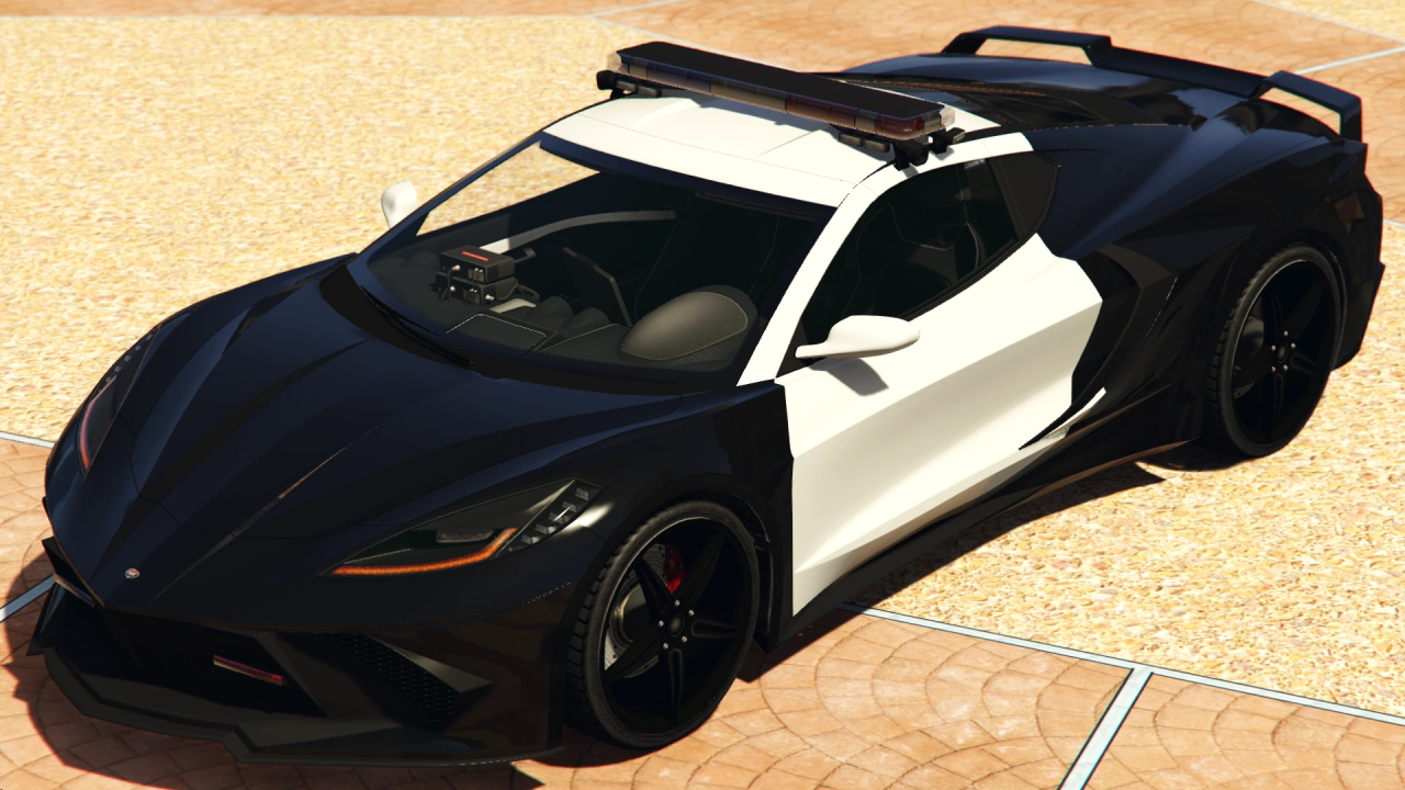設計理念:豔婦 D10 的警用版,基本參照了現實中的克爾維特 C8,靈感應該是來自 Aksyonov Nikita 創作的科爾維特C8警車渲染圖,以及一些現實中的科爾維特警用攔車模型。