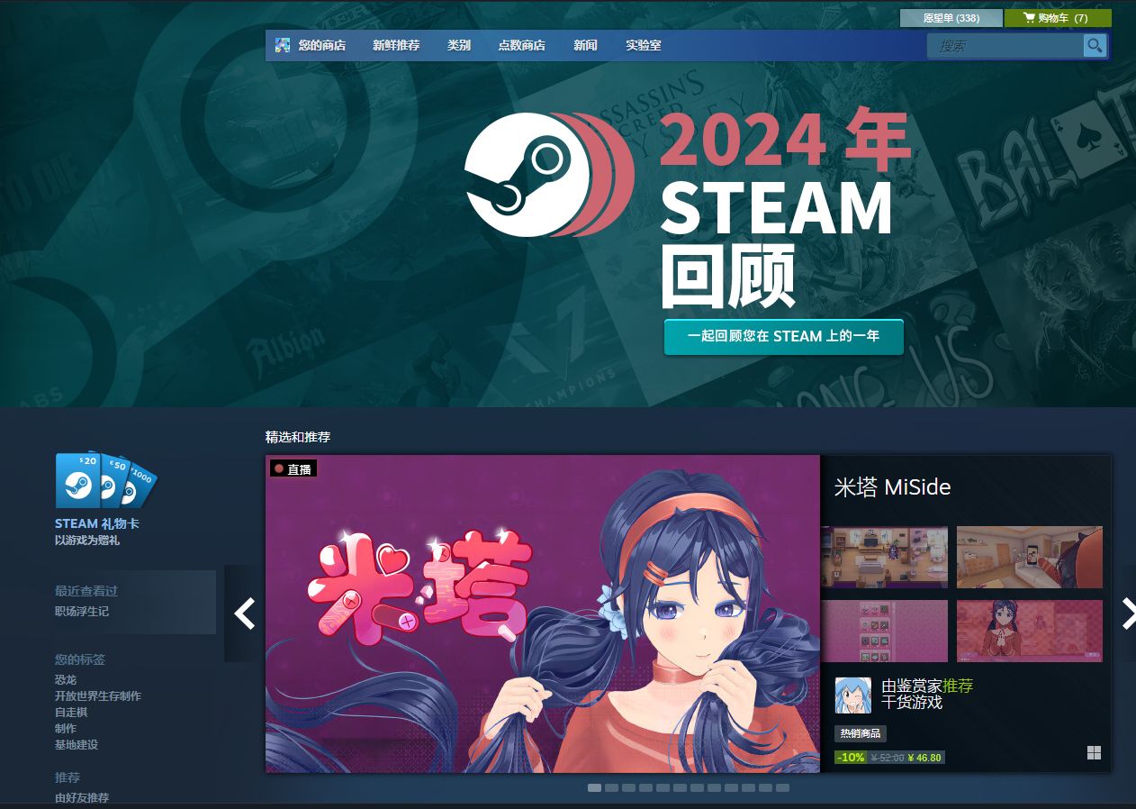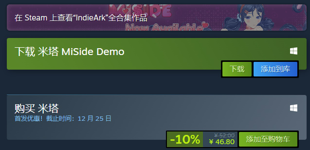 《米塔》这款游戏上架steam52块钱,首发优惠只需要46.8元,即可把赛博病娇带回家。meta类游戏的神作之一,不得不说俄乌制作人在这方面从来不会令人失望,这款游戏非常能带动玩家的情绪(里面有不少自己跟Mita互动的小game),而且还可以遇见不同风格的Mita,游戏里的妹妹比很多中日二次元都可爱,只需要短短几小时的游戏流程就能让你深刻的记住妹妹的每一个性格特点。要是硬要说这游戏有什么缺点,那就是稍稍贵了那么一点点。