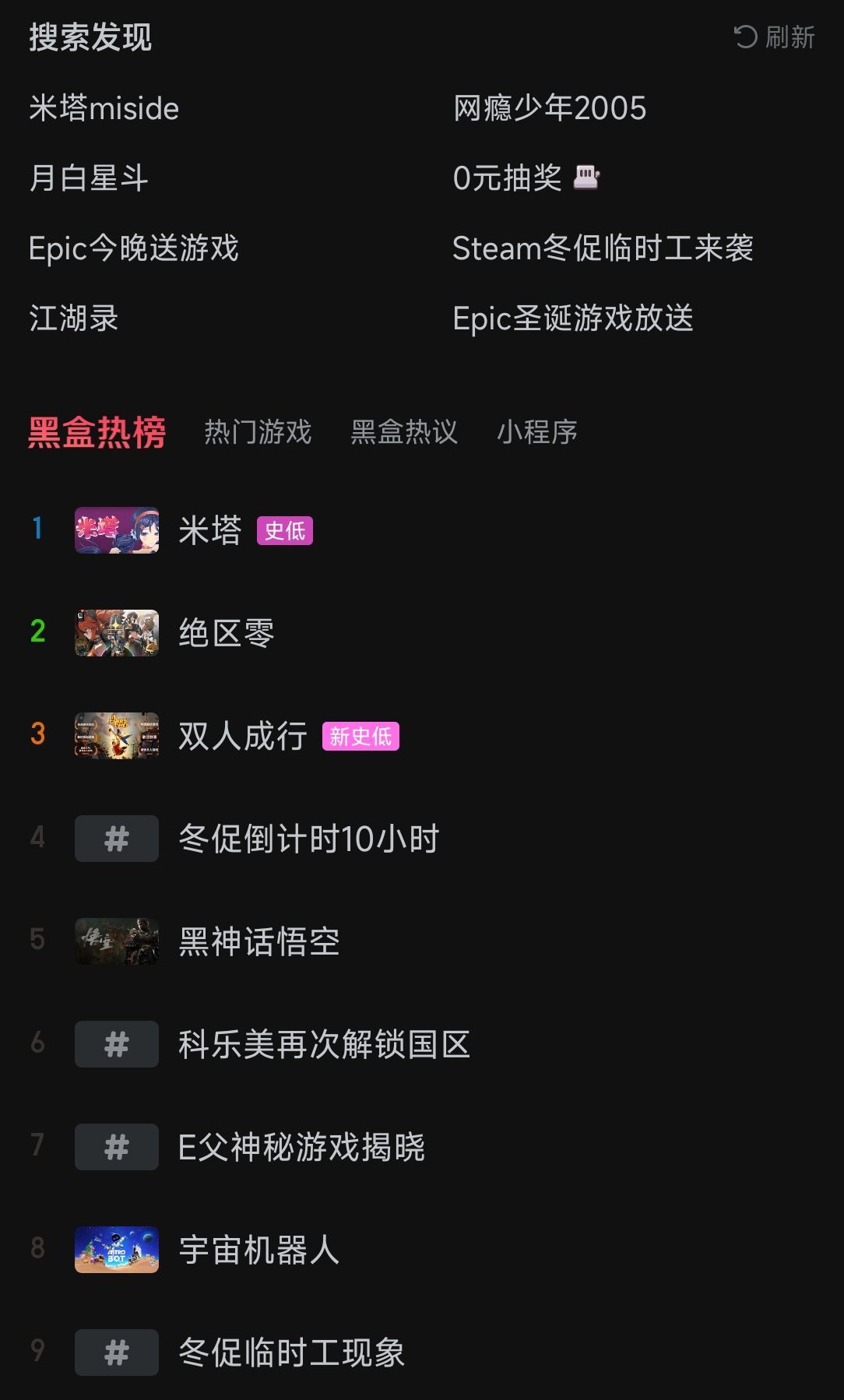 上线后长期霸榜小黑盒热榜第一,热门游戏榜第一