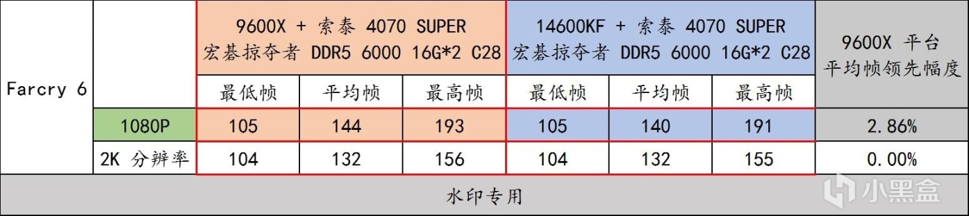 ▲ 《Farcry 6》Benchmark 性能實測,9600X 平臺 + DDR5 6000 C28 表現更爲出色。