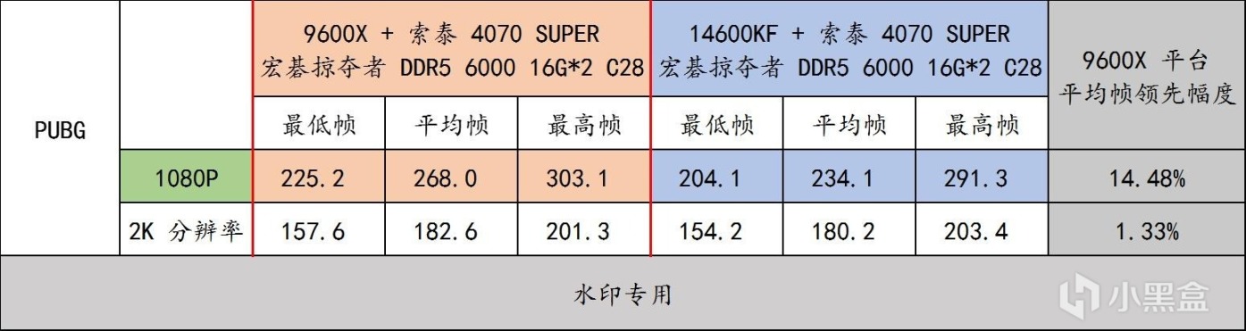 實測 AMD 9600X 平臺在在 DDR5 6000 C28 內存的助力下,比起 14600KF 同樣配置的平臺,能夠提供更爲出色的遊戲流暢性,助力用戶先人一步,喫雞概率得到很大的提升。